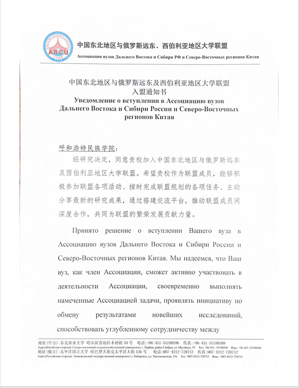 9月25-27日,鸭脖对外合作与交流中心负责人参加中国黑龙江省哈尔滨市参加了第十三届中国东北地区与俄罗斯远东及西伯利亚地区大学校长论坛,同时提交了入盟申请,并于12月1日收到了中国东北地区与俄罗斯远东及西伯利亚地区大学联盟颁发的入盟通知书。