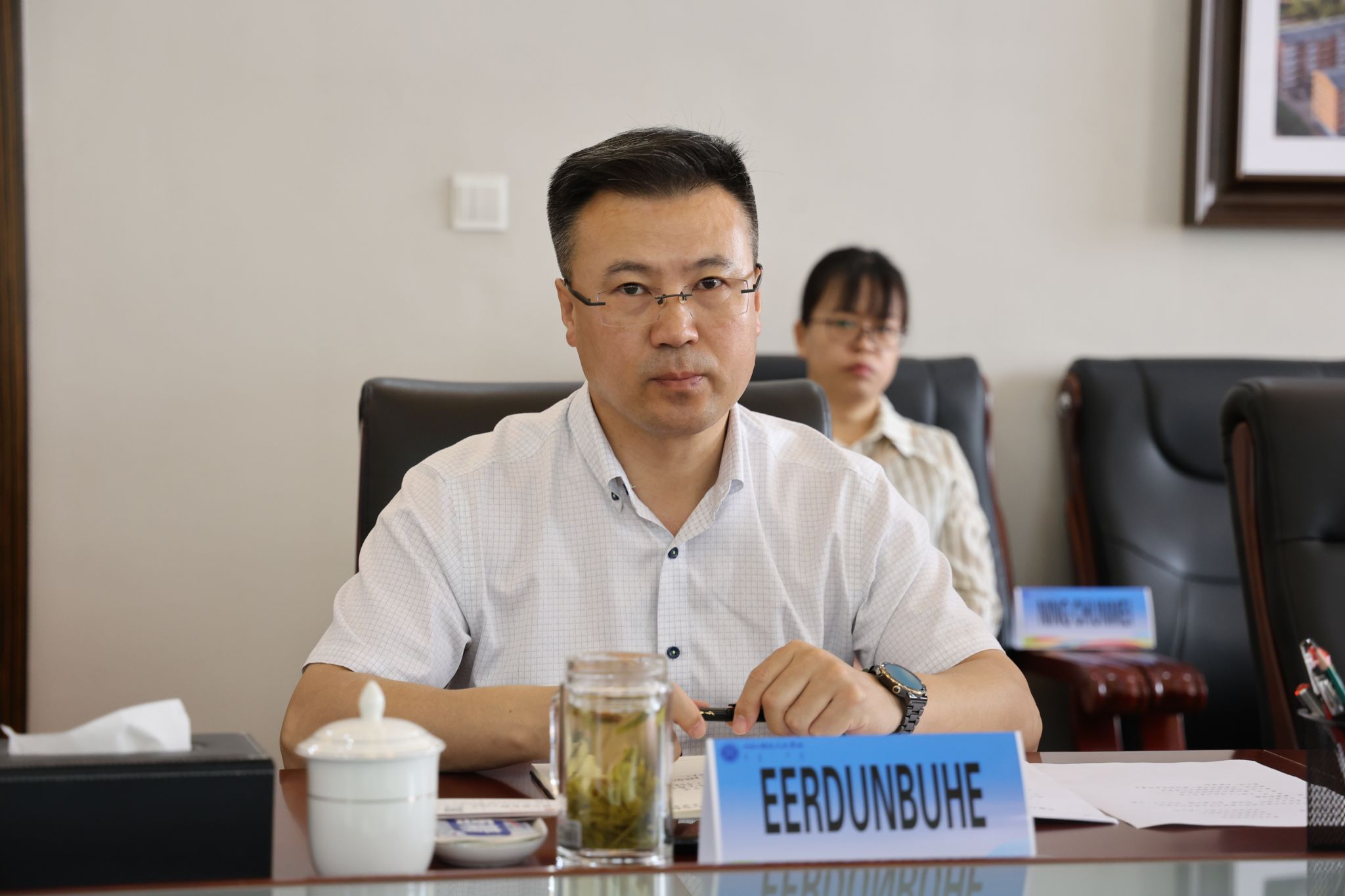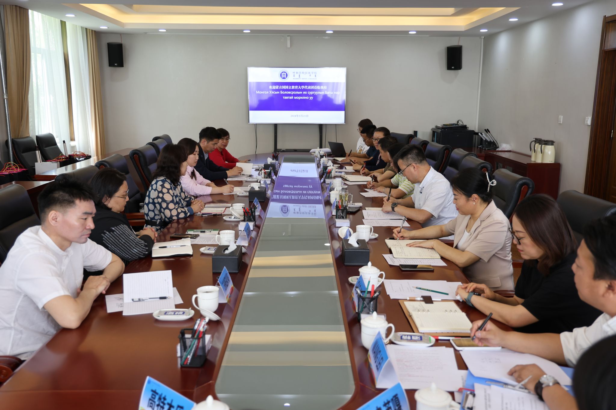 5月21日上午,蒙古国国立教育大学研究生院院长巴雅尔其其格、数学与自然科学学院院长拉哈娃、社会科学与人文学院院长阿吉玛、美术与科技学院院长那日满都呼、教育研究学院院长新巴雅尔、体育学院院长巴特其其格到鸭脖访问并开展座谈交流。校党委委员、副校长额尔敦布和接见会面并参加座谈交流。