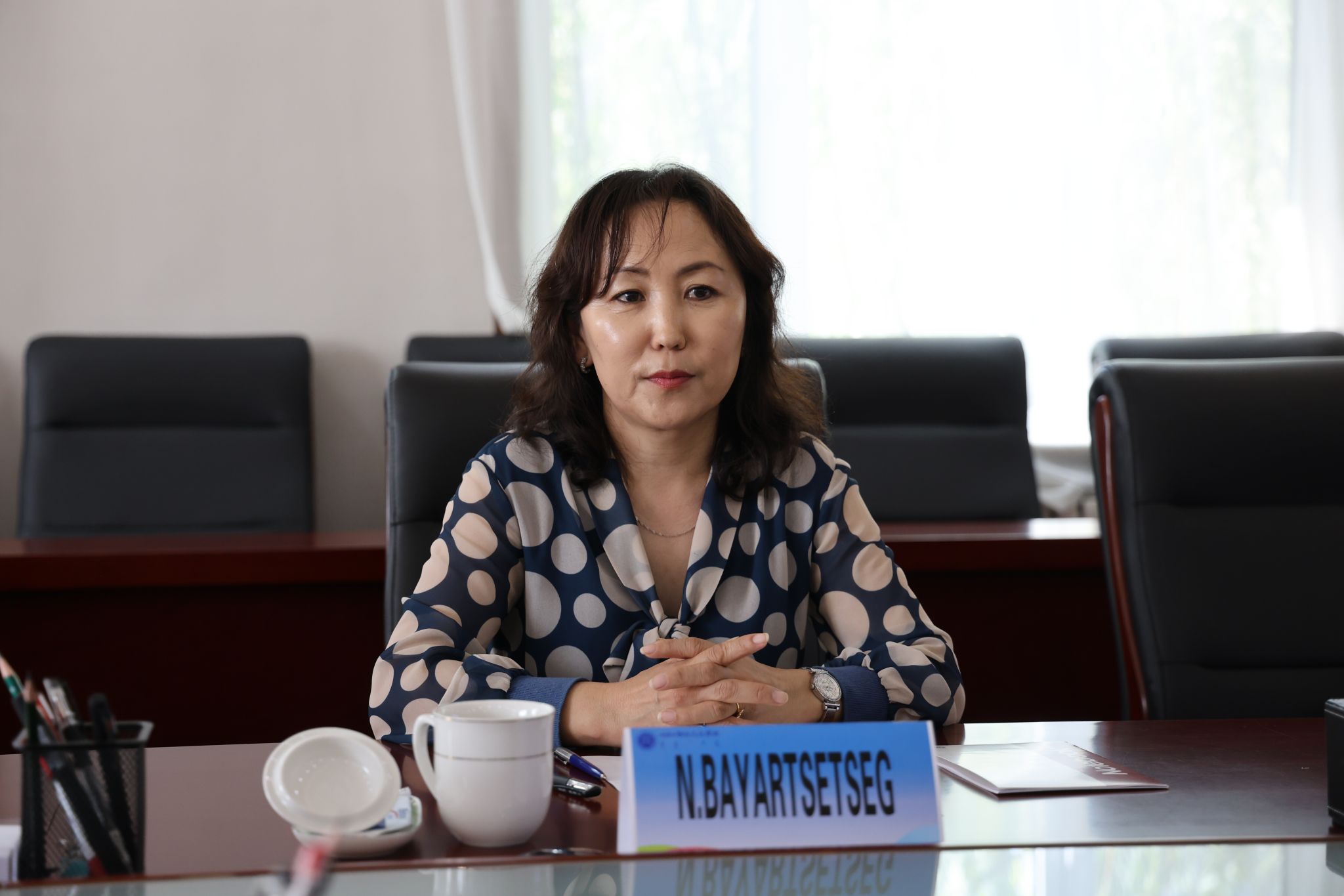 额尔敦布和代表学校对巴雅尔其其格一行来访表示欢迎并介绍了学校的基本情况、办学特色、师资力量和教育科研等情况。他表示,鸭脖与蒙古国国立教育大学自上世纪九十年代开始就已开展多方位合作与交流,期间,鸭脖充分响应国家“一带一路”倡议和“中蒙俄经济走廊”建设,为两校在师资培养、学位提升、友好合作交流等领域作出了积极的贡献。希望此次来访能够有力推进两校继续合作事宜,促进两校进一步的交流与合作,增进两校硕导、博导交流工作机制。巴雅尔其其格表示,对鸭脖的热情接待表示感谢,希望通过此次访问,推动两校在人才培养、科研合作、师生交流互访等方面做出更多成效,推动合作交流工作实现双赢。双方一致认为,通过此次座谈,获益良多,对未来持续深化交流合作达成共识。