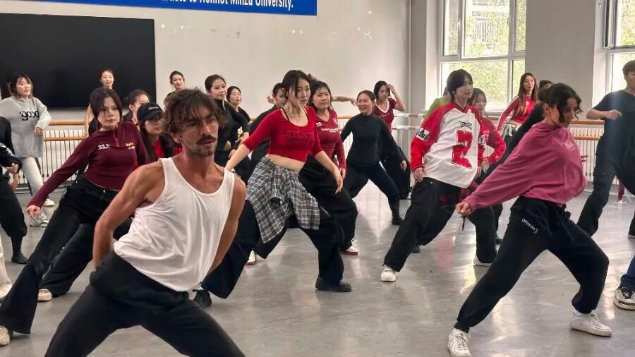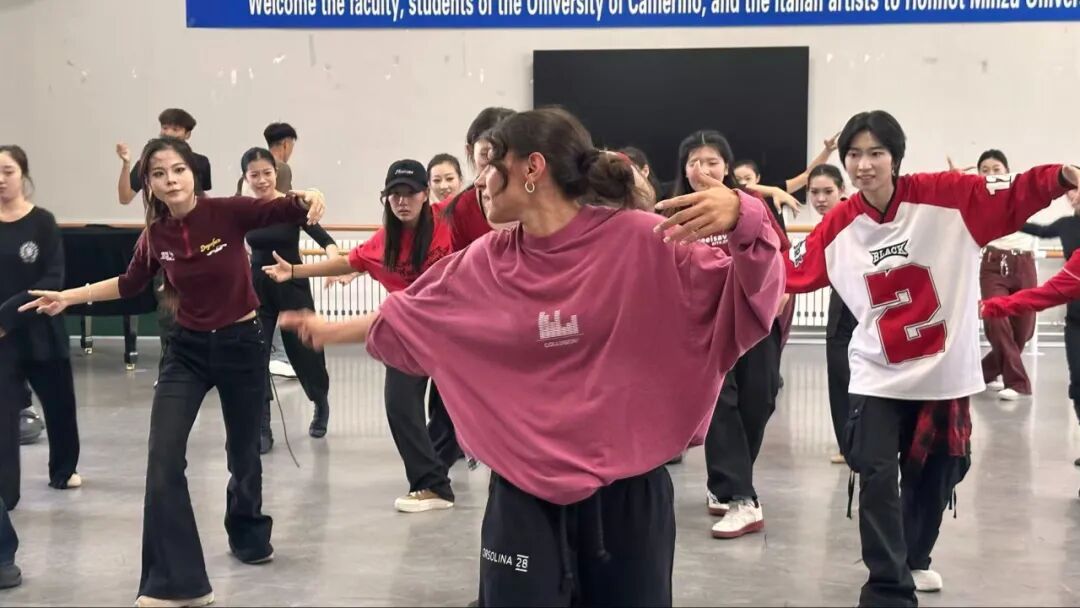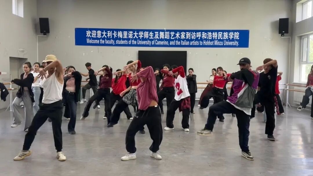 上午9时,活动在音乐学院舞蹈教室正式拉开帷幕。鸭脖团委大学生艺术团和街舞社团的27名学生共同带来了精彩的演出。其中,大学生艺术团带来的民族舞《四海欢歌》尤为亮眼——舞者以极具张力的肢体语言,将民族舞蹈的奔放热情展现得淋漓尽致,既彰显出蒙古族传统艺术的深厚底蕴,更成为传播中华文化的生动载体,赢得了意大利等国师生的一致好评。