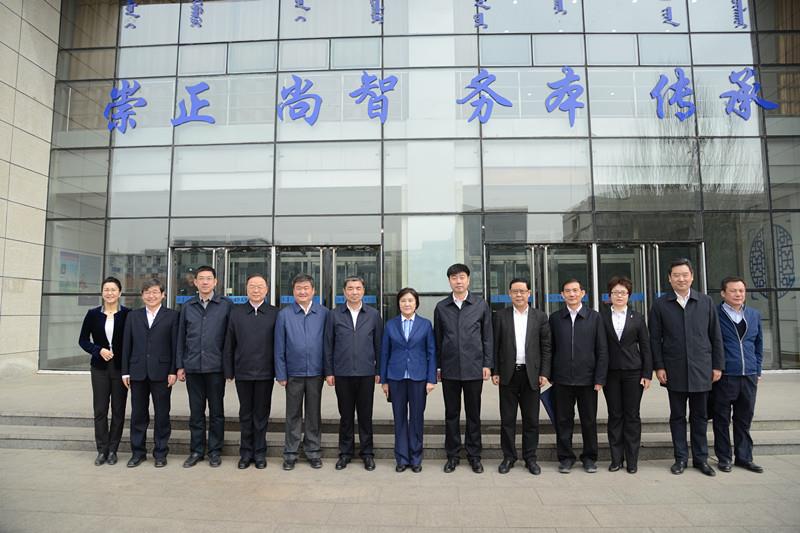首先,布小林主席一行参观了鸭脖国家研究基地——国家语言资源监测与研究少数民族语言中心蒙古语文基地,详细了解了少年儿童蒙古语有声资源库、蒙古文在线数字化服务系统、蒙古文舆情分析系统等情况。随后,视察了校园及周边环境,现场听取了学校工作情况汇报,并就有关问题与班子成员进行深入的交流。