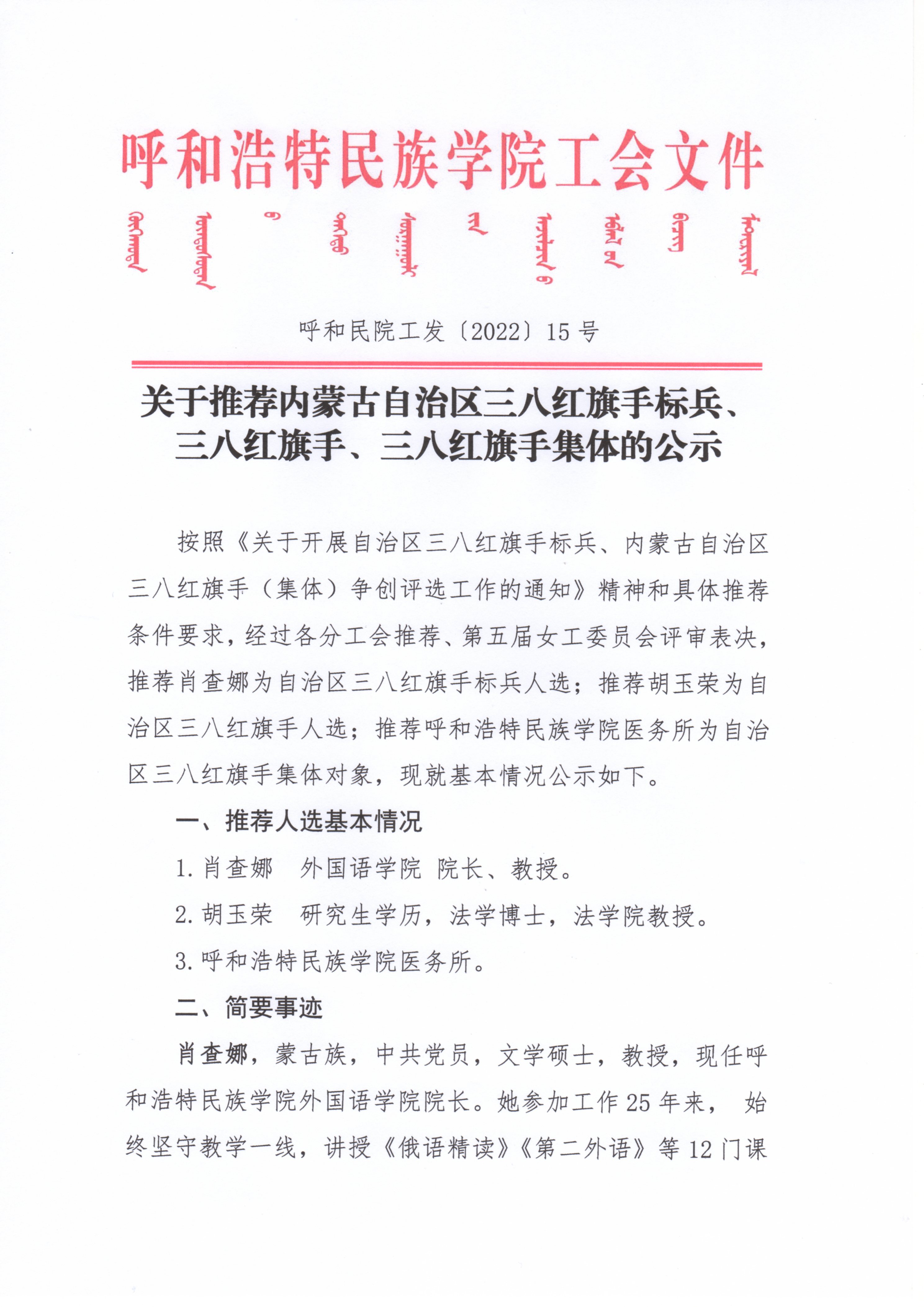 关于推荐内蒙古自治区三八红旗手标兵、三八红旗手、三八红旗手集体的公示