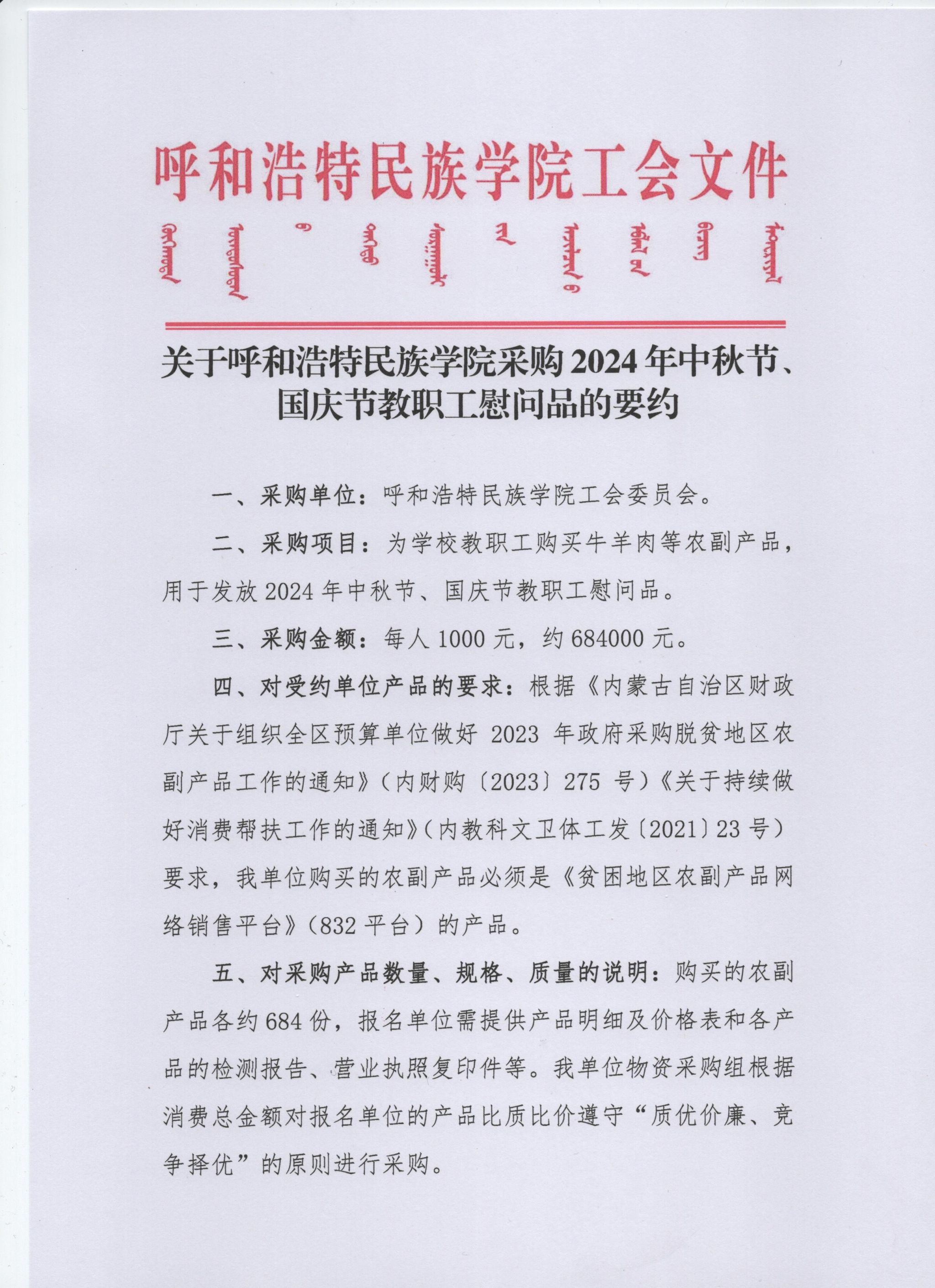 关于YABO鸭脖采购2024年中秋节、国庆节教职工慰问品的要约