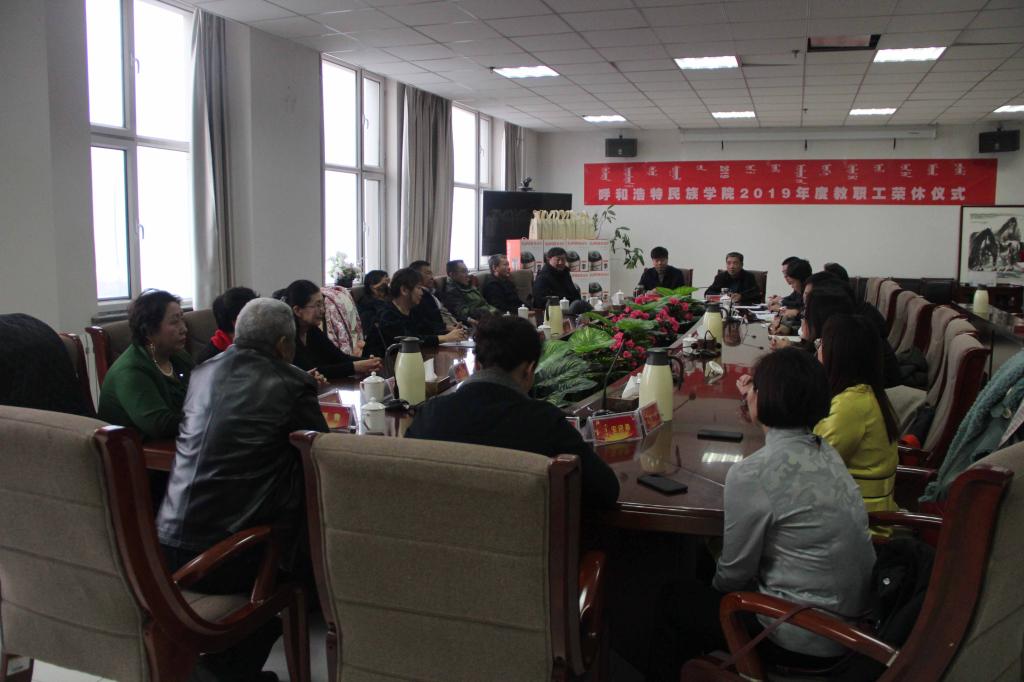 12月25日下午,学校2019年教职工荣休仪式在综合楼1102会议室举行。校党委书记孙国权,党委副书记、校长格日乐图出席仪式,2019年退休教职工、退休教职工所在单位负责人、分工会主席参加仪式。邢文岐主席主持仪式。