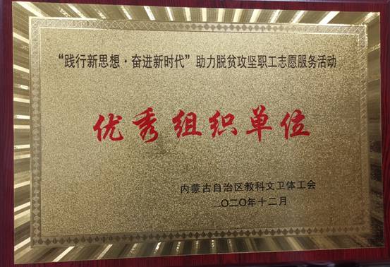 近日,自治区总工会发出通知,授予鸭脖为2020年自治区“践行新思想·奋进新时代”助力脱贫攻坚职工志愿服务活动优秀组织单位。