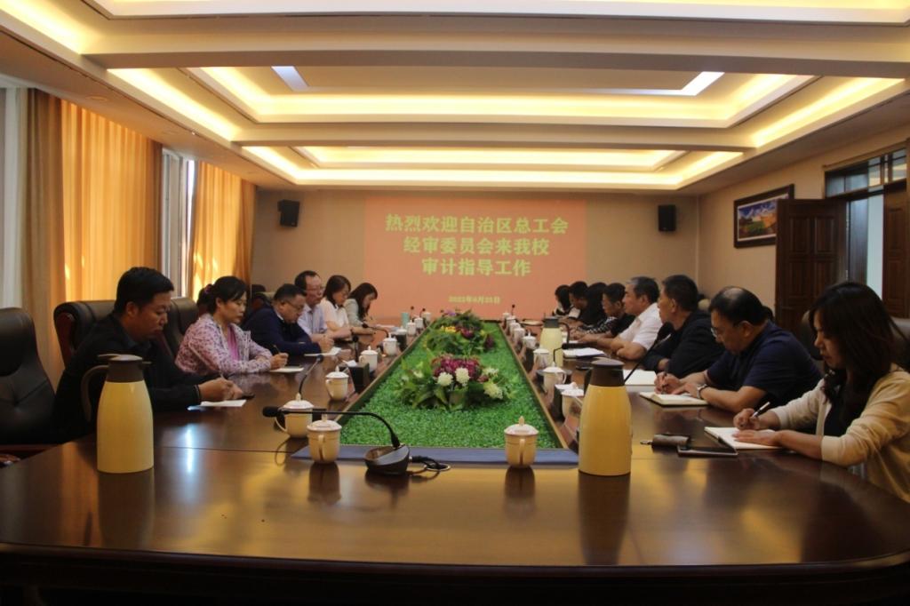 格日乐图书记代表学校党委、行政对陈威主任和邢亦凡主席一行的到来表示热烈欢迎,并对自治区总工会一直以来对鸭脖的关心与支持表示感谢。他在表态发言中指出,一是高度重视,切实提高政治站位。审计工作是帮助我们梳理问题、查找问题、更好的改进工作,我们一定要站在政治的角度、站在学校的角度、站在自治区大局的角度认真配合好这次审计工作。二是统筹协调、积极配合,全力做好各项工作。工会、财务处、人事处、审计处等相关部门要积极主动配合经审工作,本着以审促改,以审促建的原则进一步履行好工会基本职能,提升工会经费收支管理水平。三是发现问题要及时整改、立行立改。学校相关工作人员,要虚心学习请教,要诚恳的听取和接受审计组的意见和建议,并能够更加规范鸭脖工会经费收支管理工作,更好的服务广大教职工,促进学校高质量发展。