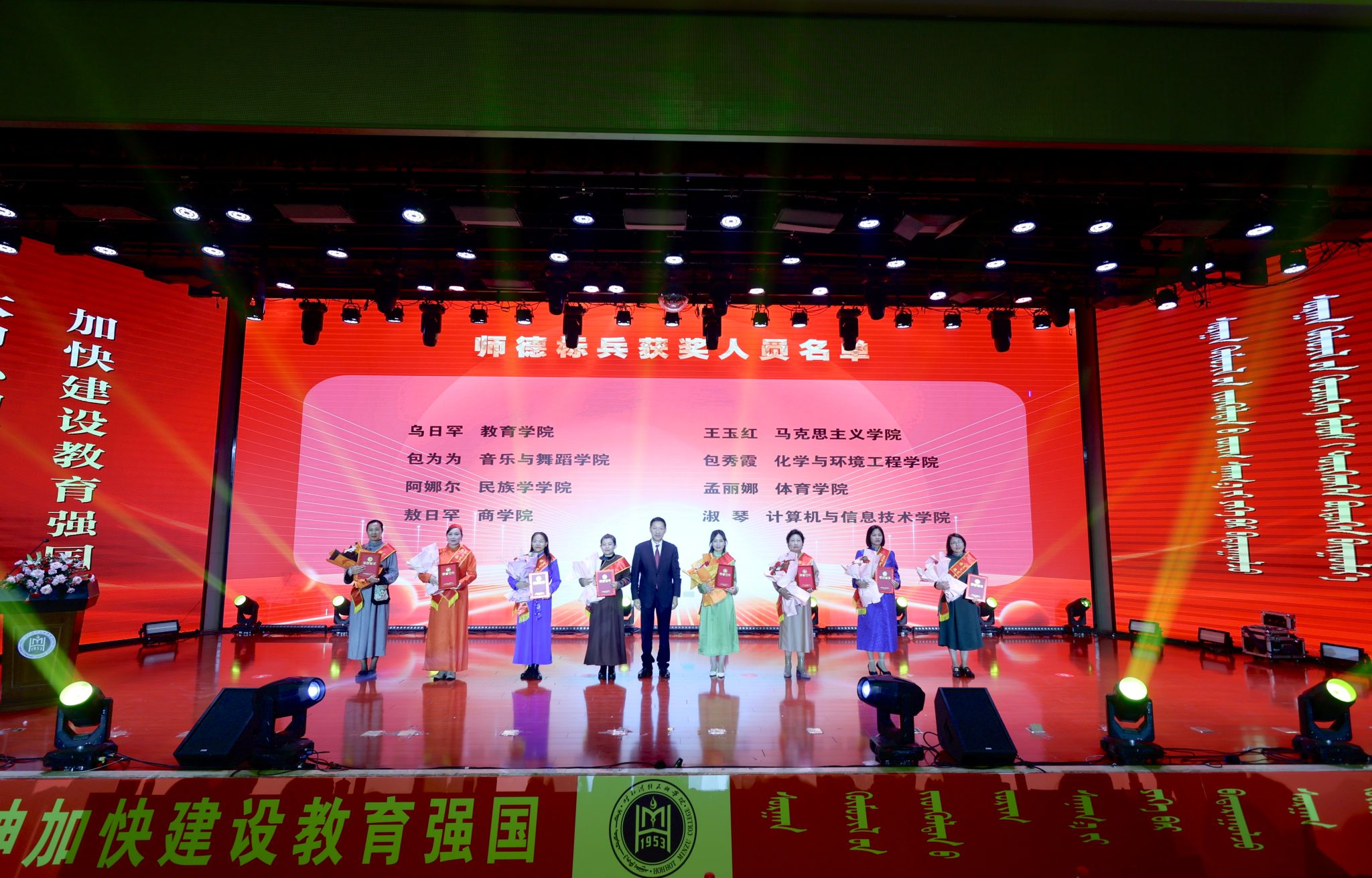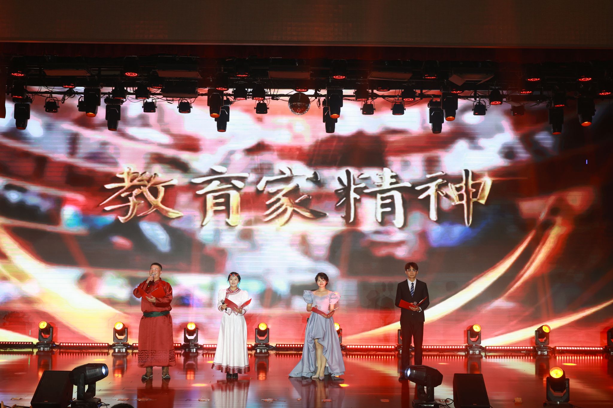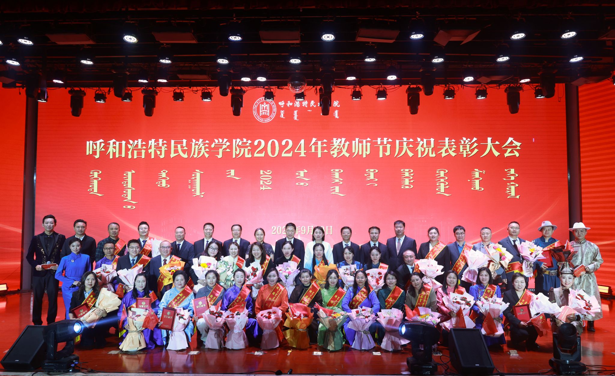 迎来第40个教师节之际,9月10日晚上,学校在铸牢中华民族共同体意识教育馆二楼报告厅举行“大力弘扬教育家精神 加快建设教育强国”为主题的2024年教师节庆祝表彰大会。校党委书记刘九万,党委副书记格根哈斯,党委委员、纪委书记、监察专员王冬梅,党委委员、副校长高喜天,党委委员、副校长额尔敦布和,党委委员、副校长双虎出席表彰大会。全校党员干部、一线教师代表,退休教师代表及全体受表彰教师参加表彰大会。大会由刘瑞鸿主持。