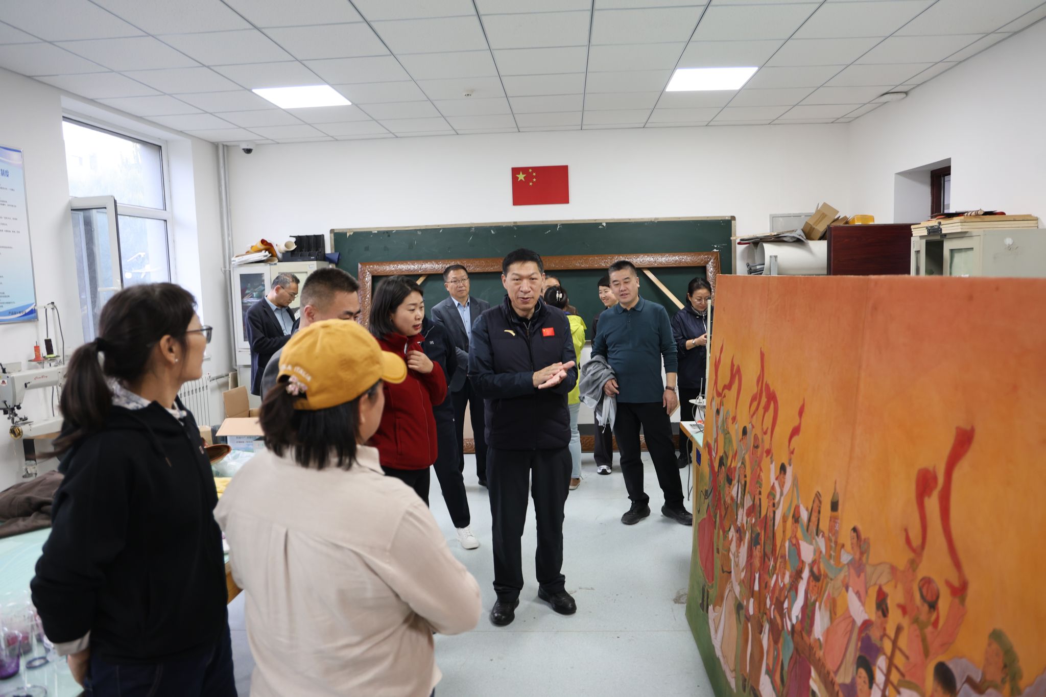 10月12日下午,校党委书记刘九万,党委副书记格根哈斯,党委委员、纪委书记,监察专员王冬梅,党委委员、副校长刘瑞鸿一行到美术与设计学院调研指导工作,并在“职工小家”进行座谈交流。