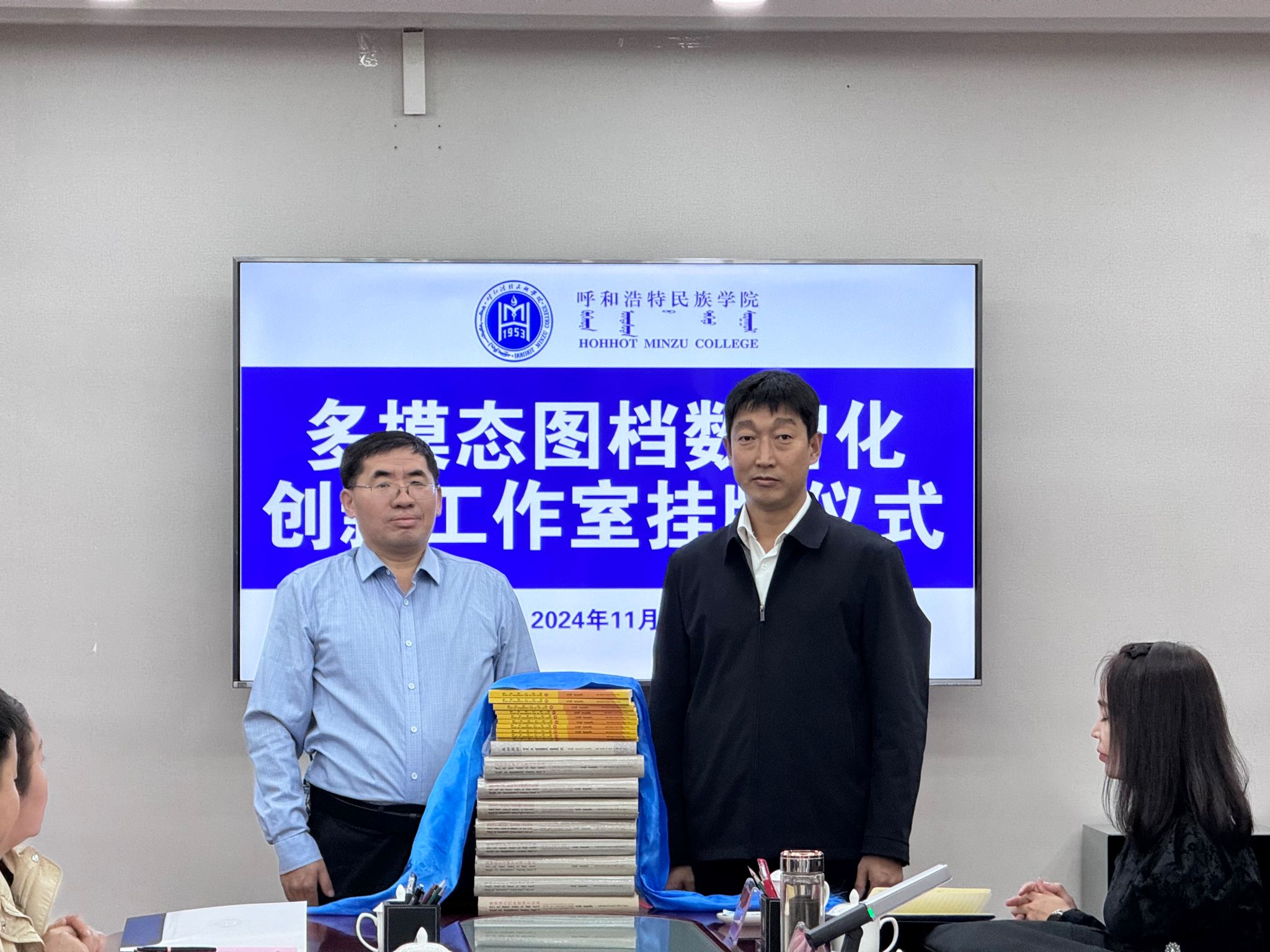 当日,内蒙古自治区档案馆二级巡视员穆林、内蒙古人民出版社资深编辑额尔木图、内蒙古蒙科立蒙古文化股份有限公司总经理斯钦图力古尔、呼和浩特市档案史志馆馆员吴宝海、联图科技有限责任公司(内蒙古)分公司副总经理苏日拉格,以及学校党政办公室、组织部、工会、图书馆、教务处、管理学院等部门的领导、专家、师生共计40余人齐聚一堂,共同见证了这一重要时刻。仪式由管理学院院长哈斯同力嘎主持。