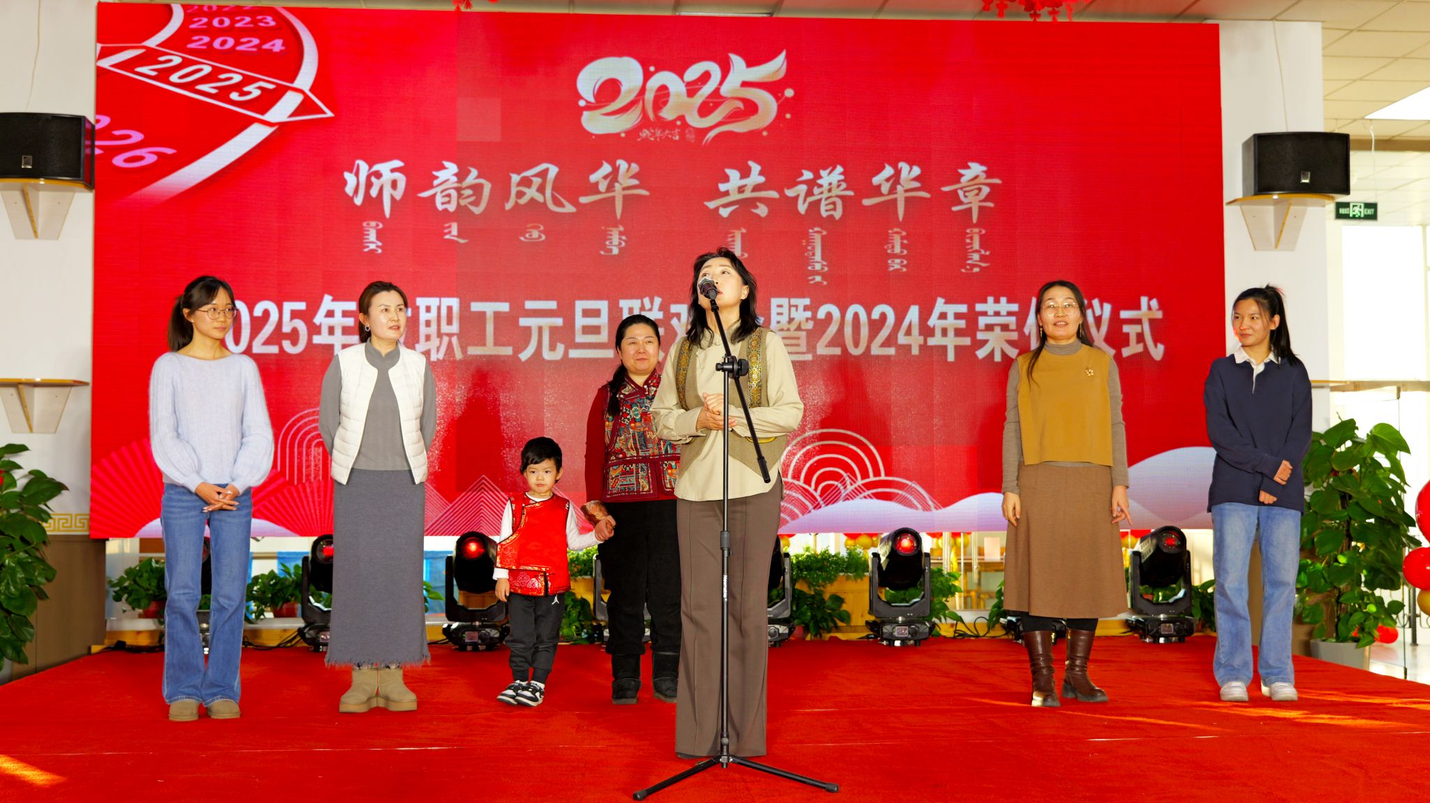 刘九万致新年贺辞。他表示,2024年是成绩斐然的一年,学校深入学习贯彻党的二十大精神、党的二十届三中全会精神,全面贯彻铸牢中华民族共同体意识主线,深入贯彻落实习近平总书记对内蒙古的重要讲话重要指示精神,加快推进应用型转型,全面贯彻落实自治区党委、政府决策部署,落实立德树人根本任务,扎实推进“十四五”规划,圆满完成全年重点任务,以实际行动有力回答了“强国建设、教育何为、民院何为”的时代课题。他希望,全体教职工凝聚智慧、群策群力,超前谋划学校“十五五”发展规划和2035远景目标,共同绘就学校教育事业高质量发展的美好蓝图,推动实现呼民院更加美好的明天。他要求老师们要持续发扬严谨的治学态度,始终保持高度的责任心和爱岗敬业精神,不断提升学术素养和科研能力;要淬炼高尚的师德师风,大力弘扬教育家精神,用情用力培养学生综合素质,关心关爱学生成长成才,努力成为学生的良师益友;要坚守职业道德,塑造良好教师形象,提升教学能力本领,聚焦当代大学生需求,提高课堂教学质效,大力提升人才培养质量。