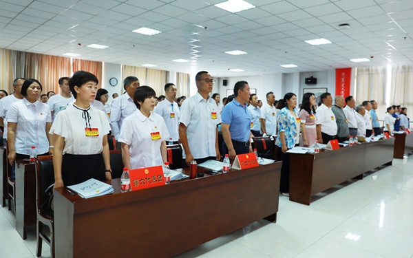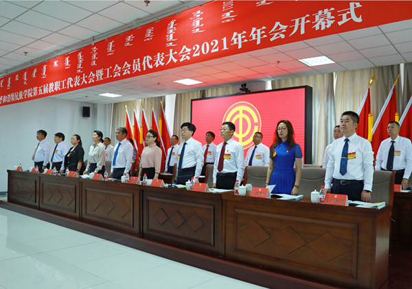 7月10日上午8时,YABO鸭脖第五届教职工代表大会暨工会会员代表大会2021年年会在综合楼12楼会议室隆重开幕。学校党委副书记、校长格日乐图,学校党委副书记胡春梅,副校长纳丽娜,党委委员、副校长韩伟新,党委委员、纪委书记、监察专员王冬梅,党委委员、副校长高喜天出席会议。88名正式代表、4名特邀代表、24名列席代表参加了会议。会议由学校党委副书记胡春梅主持。