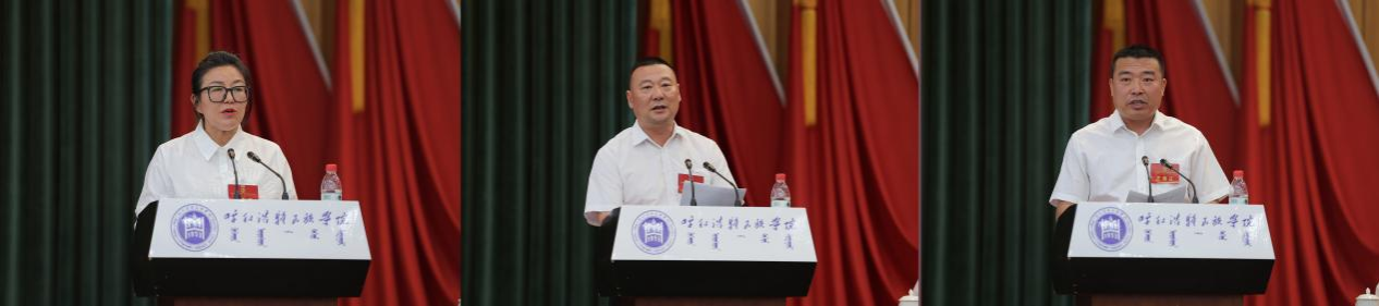王敏向大会作了题为《抢抓机遇 勇担使命 奋力开创学校高质量发展新局面》的工作报告。报告从强化政治引领,党建工作开创新局面;聚焦主题主线,铸牢中华民族共同体意识见行见效;强化学科专业建设,晋位升级取得新突破;深化教育教学改革,人才培养质量得到新提升;深化评价改革,师资队伍建设得到新加强;强化科研机制,科研创新取得新成效;深化开放办学,对外交流合作迈上新台阶;提升服务能力,综合保障展现新作为等八个方面全面回顾总结了学校2024年取得的卓越成果,并结合已完成的重点工作任务情况,围绕坚持党建引领,筑牢思想政治根基;紧扣工作主线,深化铸牢中华民族共同体意识教育;坚持立德树人,推动学校内涵式发展;优化治理效能,提升综合服务保障能力等四个方面对学校2025年重点工作任务作了安排部署。