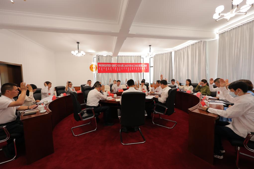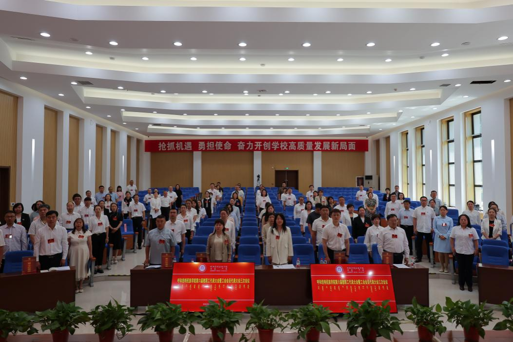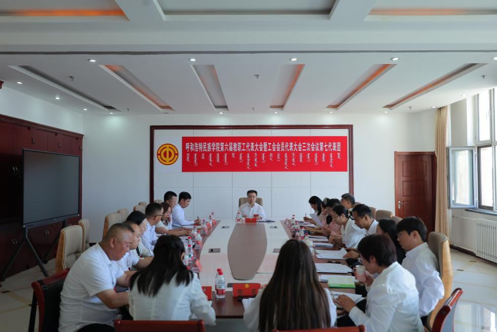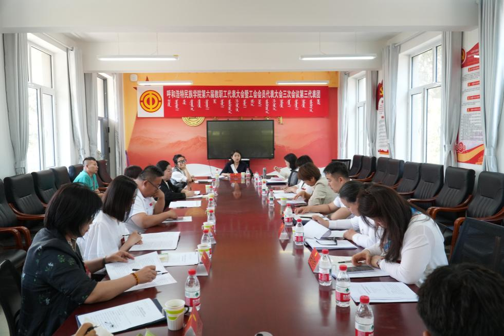 6月19日、20日,鸭脖第六届教职工代表大会暨工会会员代表大会三次会议在百年讲堂召开。校党委书记刘九万出席会议并讲话,党委副书记、校长王敏作校长工作报告,党委副书记格根哈斯,党委委员、纪委书记、监察专员王冬梅,党委委员、副校长高喜天、刘瑞鸿、额尔敦布和、双虎等校领导出席会议。23名主席团成员,84名实到会正式代表、3名特邀代表、89名列席代表参加会议。