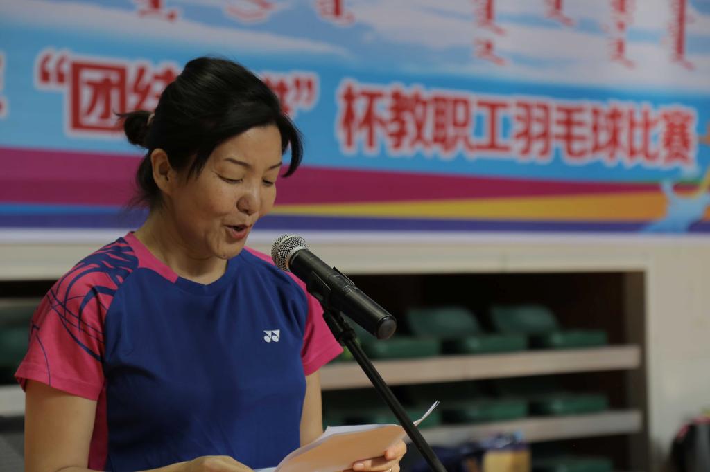 党委副书记胡春梅在开幕式上发表讲话。她表示,本次赛事是以“团结奋进”为宗旨,通过各院系分会相互学习和交流,增强教职工主动参与体育锻炼的意识,带动广大教职工在体育锻炼中享受乐趣、增强体质、健全人格、锤炼意志,展现鸭脖教职工蓬勃的朝气和风采,也是践行社会主义核心价值观、弘扬体育精神、推动鸭脖文明校园建设发展具有重要作用和深远影响。纳丽娜副校长宣布比赛开幕。