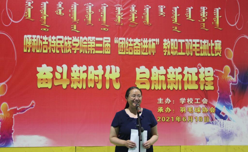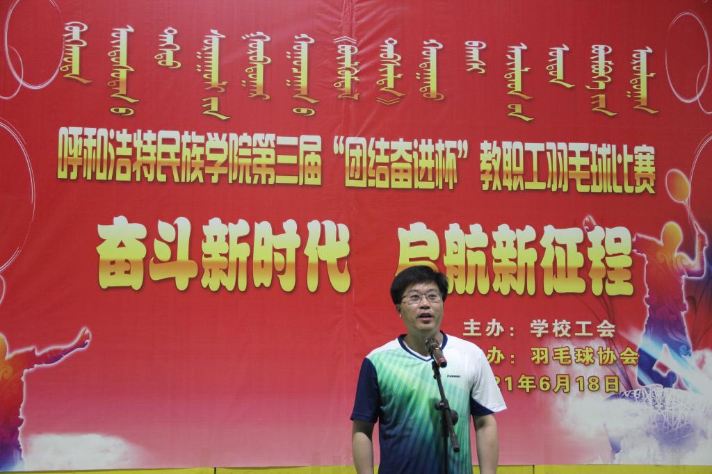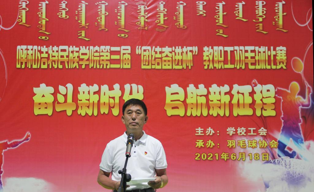 为庆祝建党100周年,丰富教职工业余文化生活,培养教职工团结、协作的团队意识,增强教职工之间的沟通交流,6月18日下午,由学校工会主办,羽毛球协会承办的YABO鸭脖“奋斗新时代 出发新征程”第三届“团结奋进杯”教职工羽毛球比赛,在体育馆一楼举行。学校党委副书记、校长格日乐图、副书记胡春梅、党委委员、副校长韩伟新、党委委员、纪委书记王冬梅、党委委员、副校长高喜天、党委委员、党政办主任朝格吉乐图及学校工会全体人员、羽毛球协会工作人员、各分工会主席、委员、全体运动员、裁判员160余人参加了开幕式。开幕式由学校工会主席邢文岐主持。