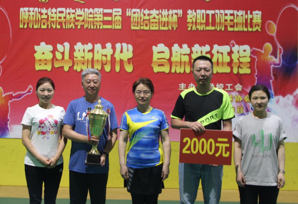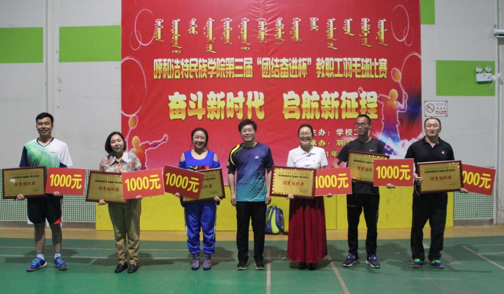 化学与环境工程学院分会摘得本届“团结奋进杯”;学校羽毛球协会、党群分工会、行政分工会、教辅分工会、蒙古学学院分工会、新闻传媒学院分工会被评为本届优秀组织奖。