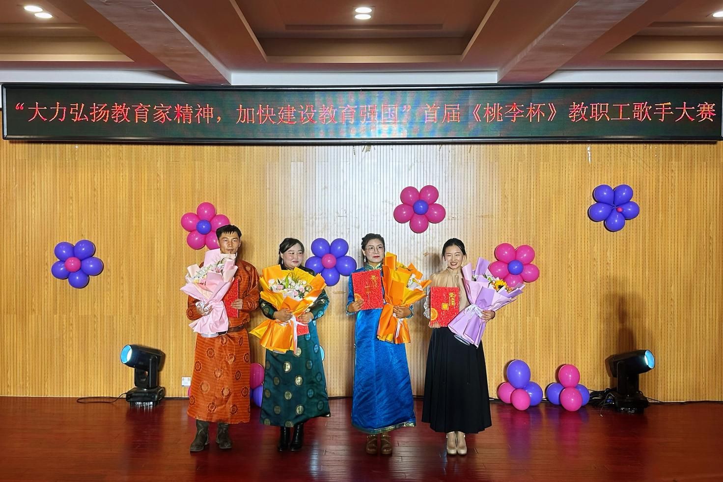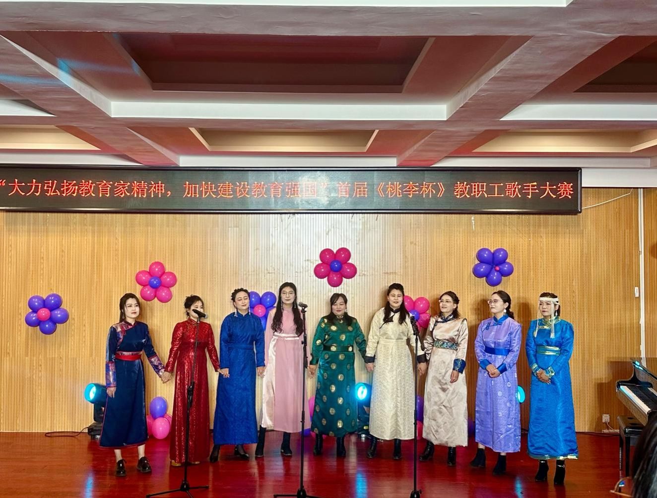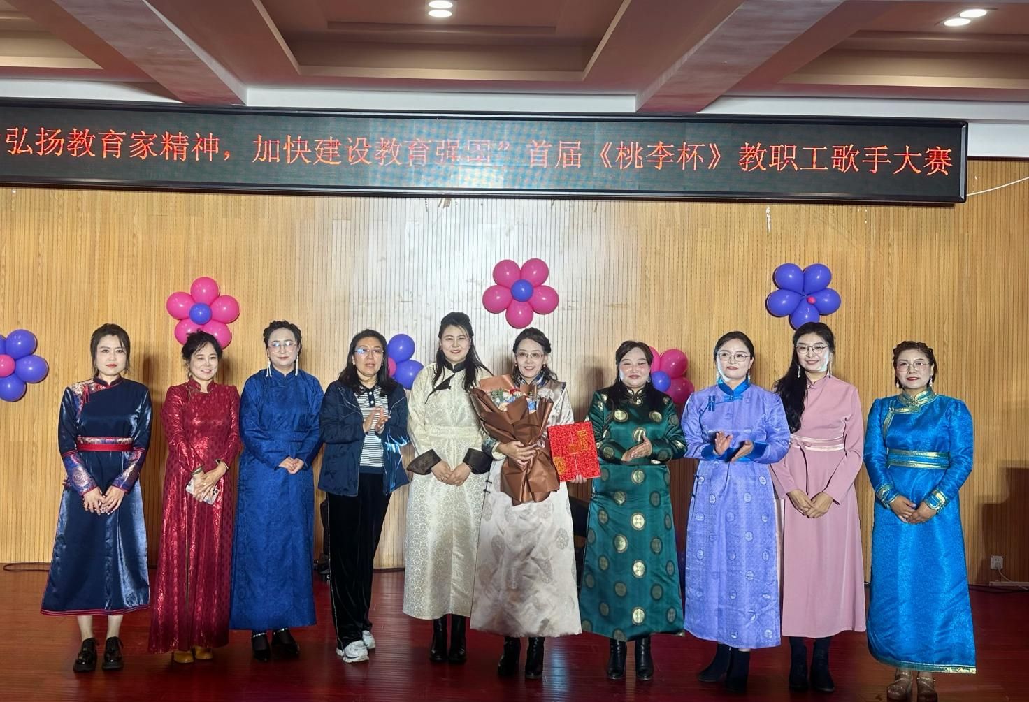 为庆祝第40个教师节,展现鸭脖教职工才艺风采,持续唱响时代主旋律,9月3日晚,由学校工会主办,音乐与舞蹈学院承办的“大力弘扬教育家风采,加快建设教育强国”首届《桃李杯》教职工歌手大赛在音乐楼多功能厅拉开帷幕。比赛邀请音乐与舞蹈学院包秀兰副教授、包金花副教授、青年讲师格日乐巴图担任评委。工会、各二级学院相关负责人、参赛教师、学生代表近100人观看了比赛。