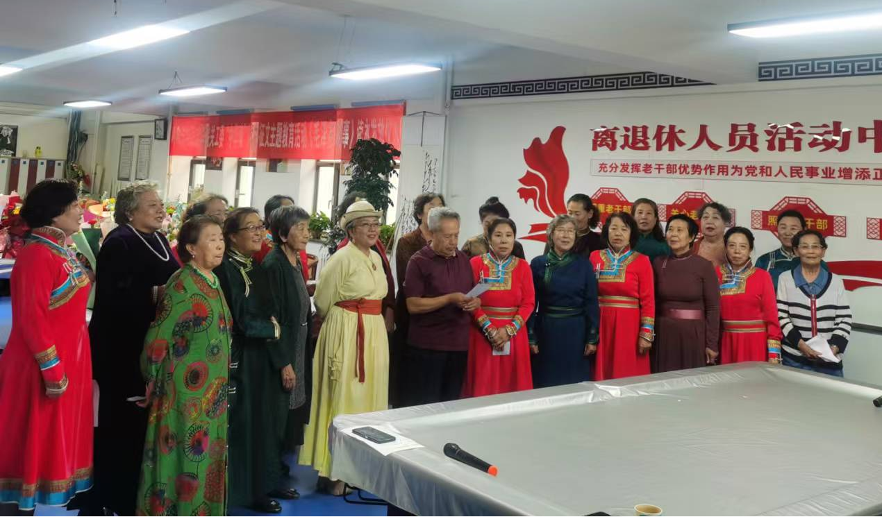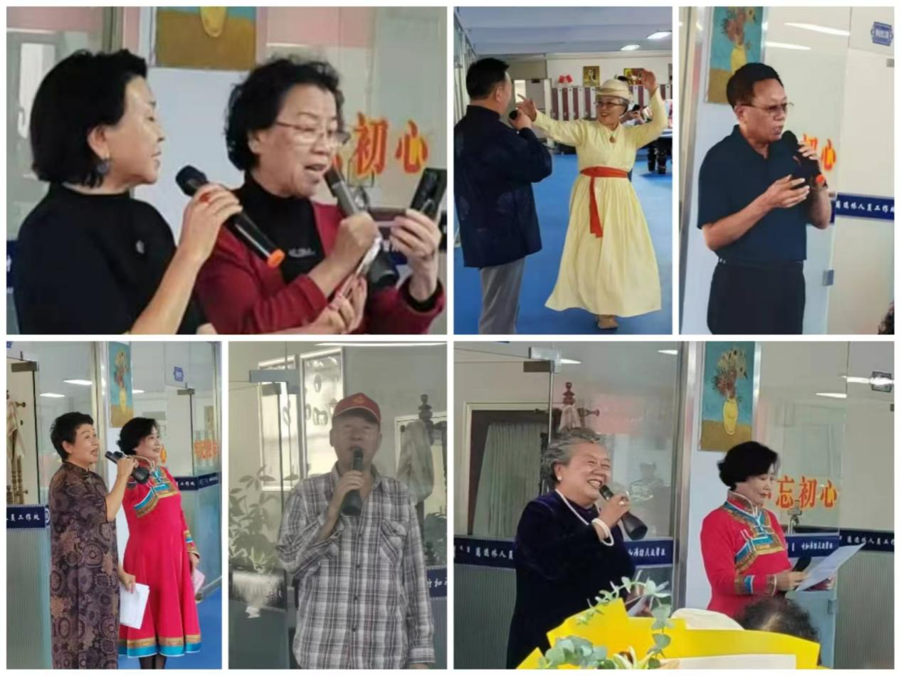全体与会人员合影留念后,进行了形式多样的文艺表演。文艺表演在优美的歌声中开场,在合唱队老同志们的合唱、独舞、京剧表演中达到高潮,在老教师们的精彩歌唱中落下帷幕。