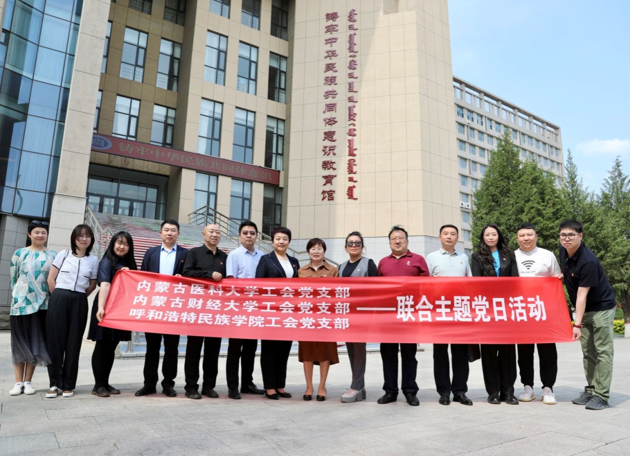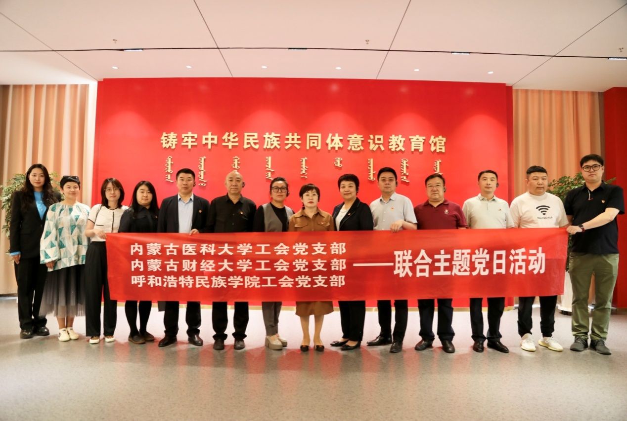 为深入学习宣传贯彻习近平总书记关于加强和改进民族工作的重要思想和在全国民族团结进步表彰大会上的重要讲话精神,全面深化铸牢中华民族共同体意识学习教育,5月28日,学校工会党支部与内蒙古医科大学工会党支部、内蒙古财经大学工会党支部联合开展了“党建引领聚合力,民族团结共奋进”主题党日活动。