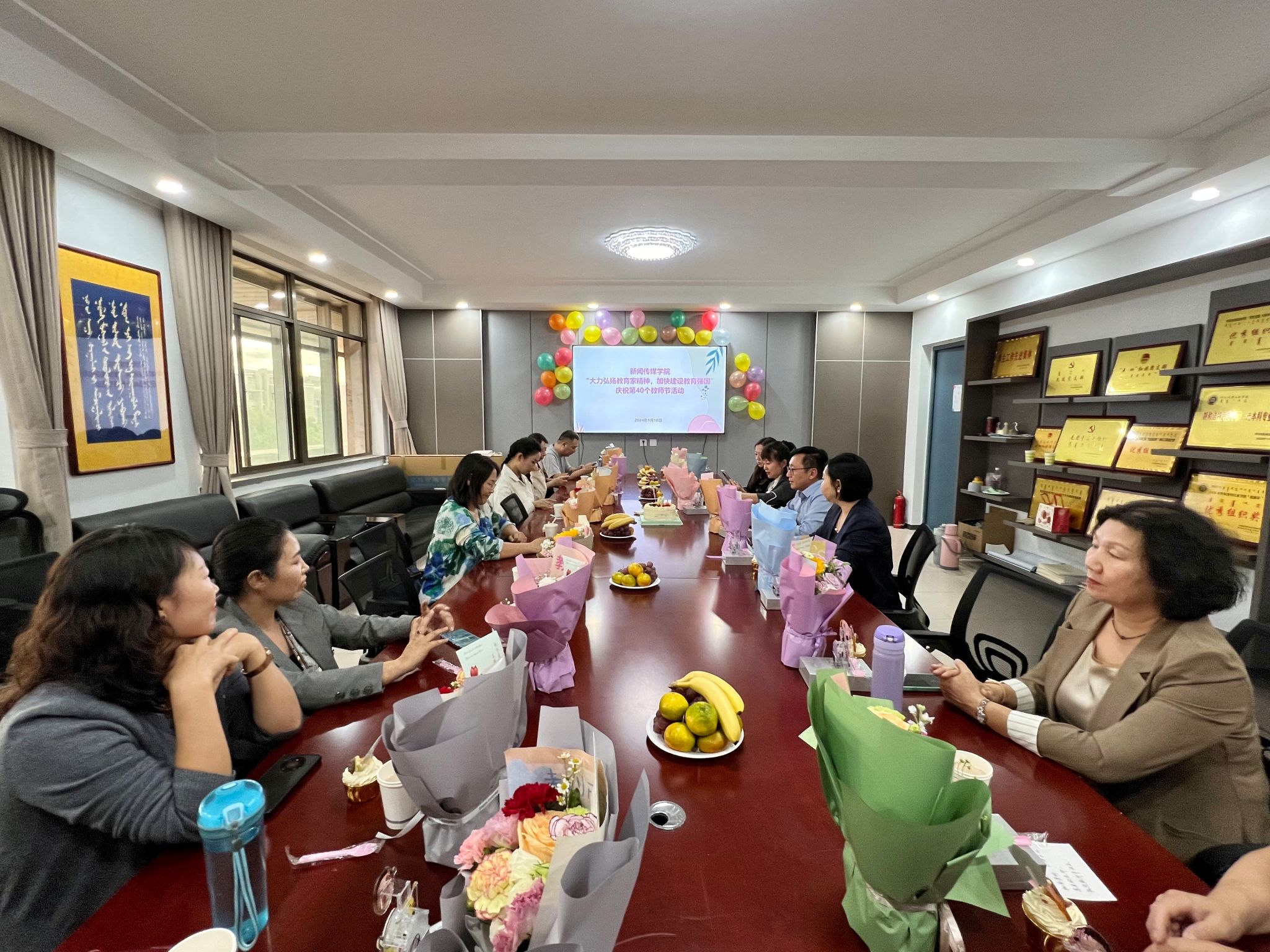 为迎接第40个教师节,9月10日,新闻传媒学院分工会在都林楼519会议室开展“大力弘扬教育家精神,加快建设教育强国”教师节座谈会,学院全体教职工参加,学院副院长、工会主席安迎春主持。