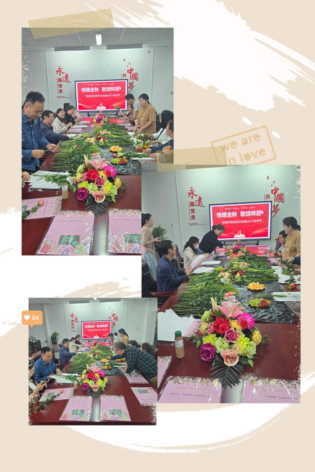 9月9日下午,在第40个教师节来临之际,管理学院开展庆祝第40个教师节“师情花意 甜蜜感恩”插花品香活动,向老师们表达深深的敬意。