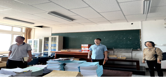 2023年8月15日上午9时,发展规划与学科建设处处长额尔敦布和深入数学科学学院进行调研。额尔敦布和处长走访了数学学院办公场所、教学场所、资料室、仓库等地方,对安全用电、教学场所的充分利用、各类场所的卫生情况、走廊展板的布置等进行了细致、认真的指导,并提出教学、科研、建设一体化推进方面的诸多建议。