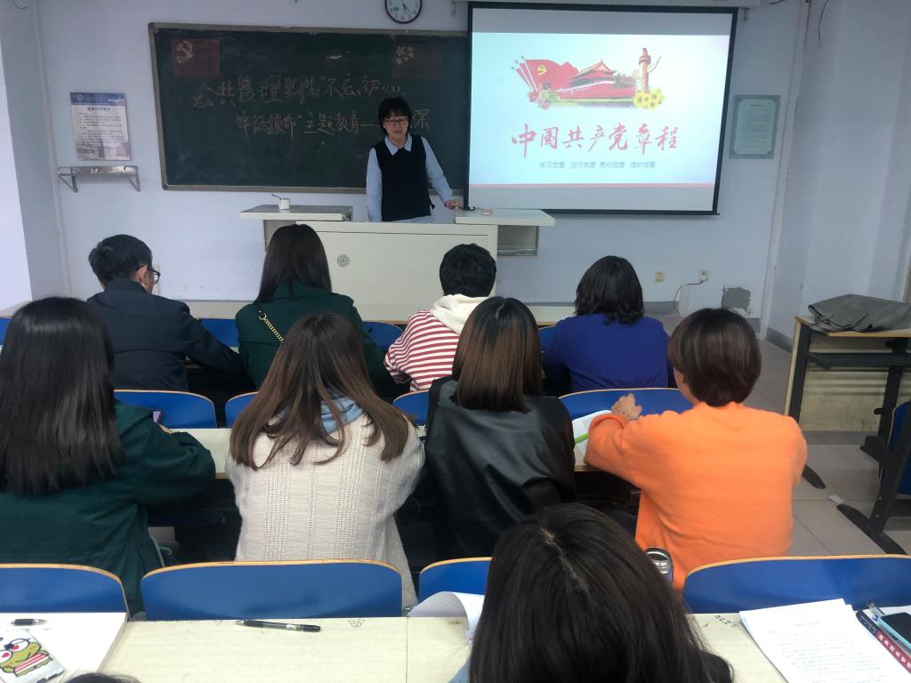 同时,第一指导组全体同志参加了公共管理学院10月15日下午在都林楼307教室开展的“不忘初心、牢记使命”主题教育专题党课活动,听取了党总支书记海霞所讲授的《不忘共产党人的初心、牢记共产党人的使命》党课、党总支副书记额尔敦格日勒同志所讲授的《中国共产党党章解读》党课。