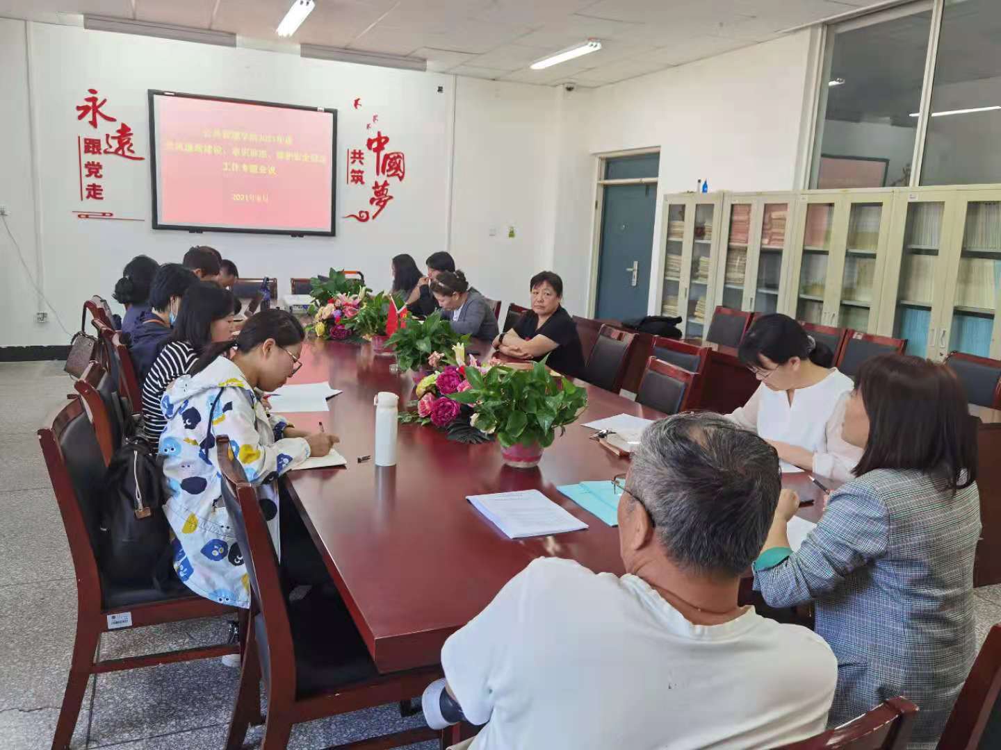 为贯彻落实中央、自治区以及学校党委的部署安排,全面加强学院党风廉政建设、意识形态、安全稳定工作,进一步统一思想、坚定理想信念、牢记使命,保障学院各项事业持续健康发展,6月11日下午,在尚智楼112会议室召开公共管理学院2021年度党风廉政建设、意识形态和安全稳定工作专题会议。学院班子成员、全体教职工参加会议,会议由党总支书记海霞主持。