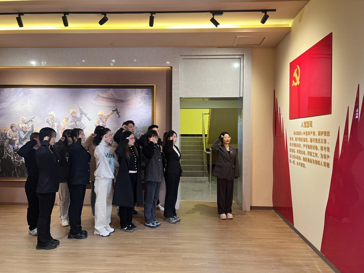 最后,全体党员在党旗前一齐重温入党誓词,砥砺前行初心、坚守担当使命。