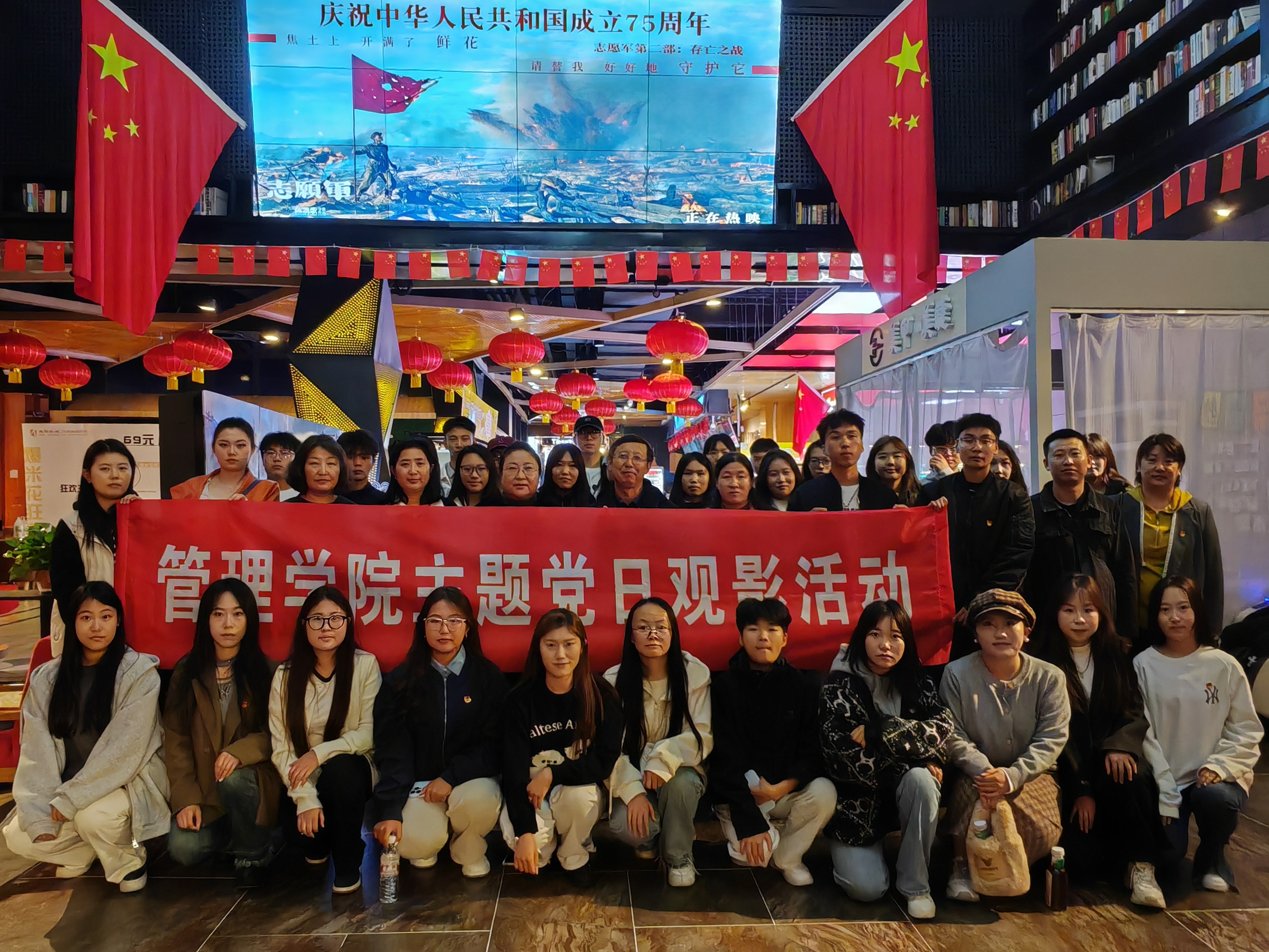 为庆祝中华人民共和国成立75周年,加强师生党员的爱国主义教育和革命传统教育,10月24日,管理学院党总支组织师生党员集中观看爱国主义影片《志愿军:存亡之战》。