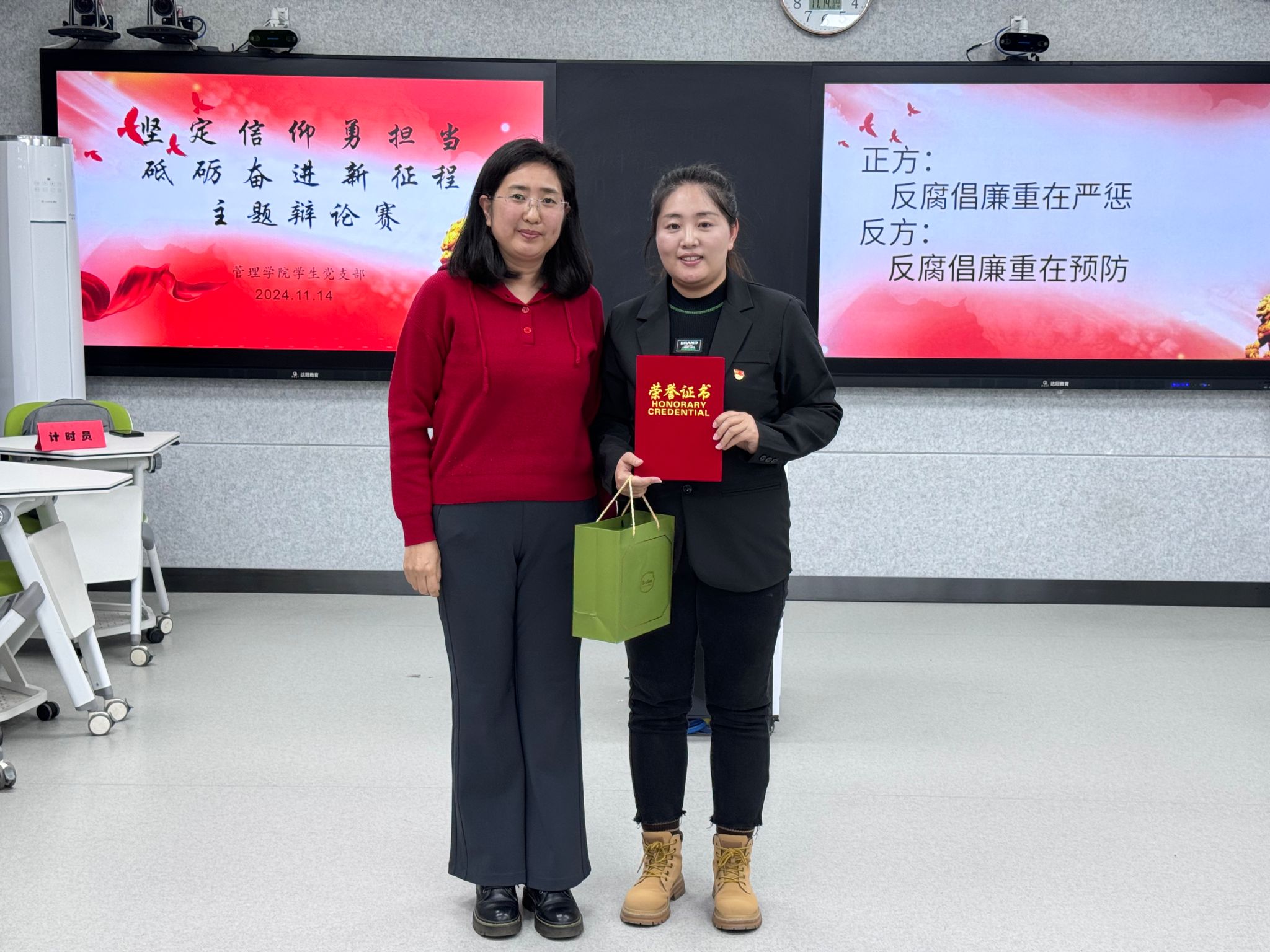 这场辩论不仅展现了大学生党员对反腐倡廉的深刻思考,让更多人意识到,在反腐倡廉的征程中,严惩与预防实则相辅相成,缺一不可,共同助力构建廉洁清正的社会环境,更体现了当代青年关注社会热点、积极参与社会治理的责任感。