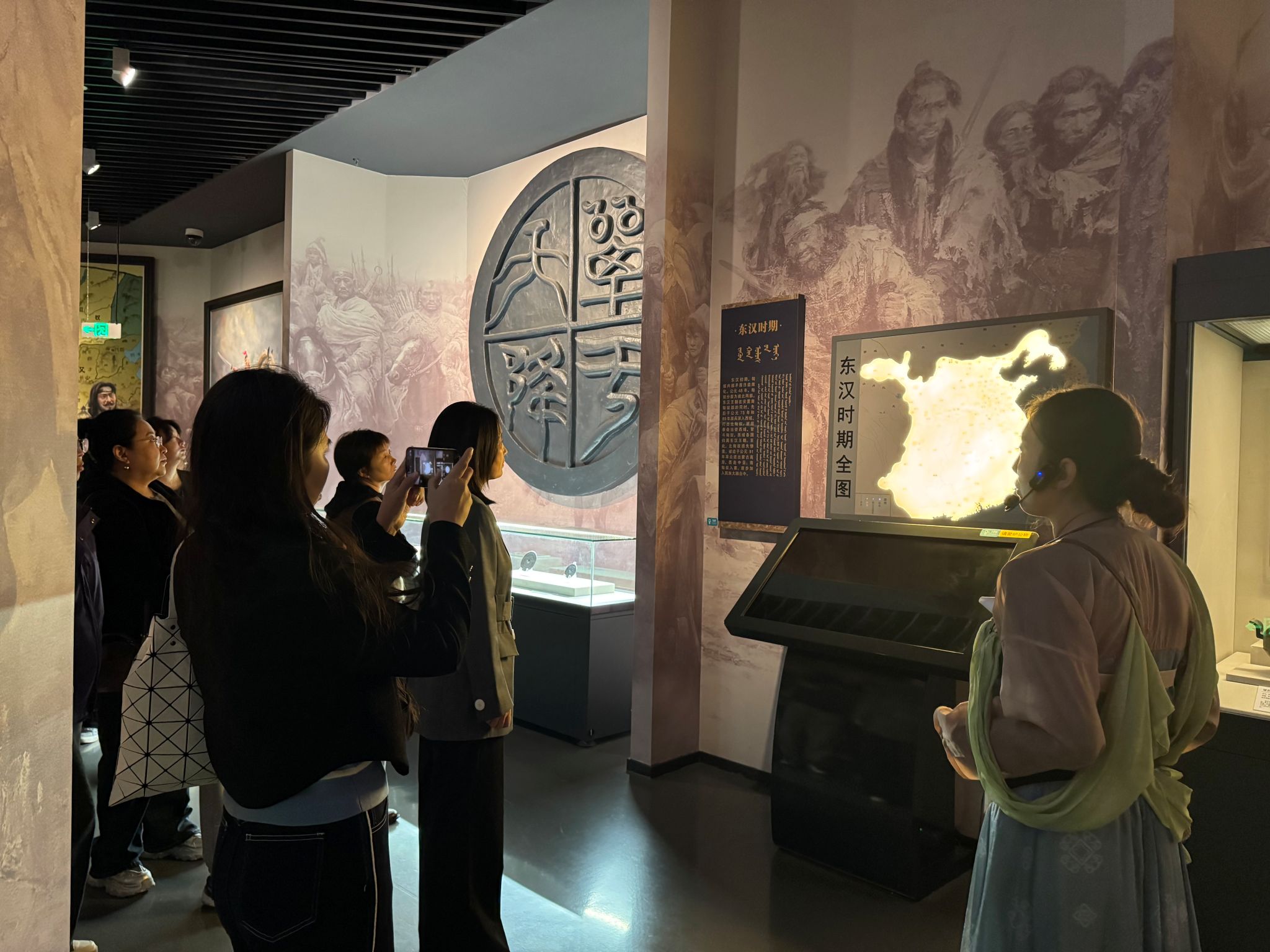 在专业讲解下,全体人员依次参观了“昭君出塞”历史展区、匈奴文化陈列区及民族团结主题展厅。通过珍贵文物、场景复原和史料,大家深入了解了昭君促进民族交融的历史贡献,深刻感悟了中华民族“多元一体”的发展历程和“民族团结一家亲”的深厚传统。