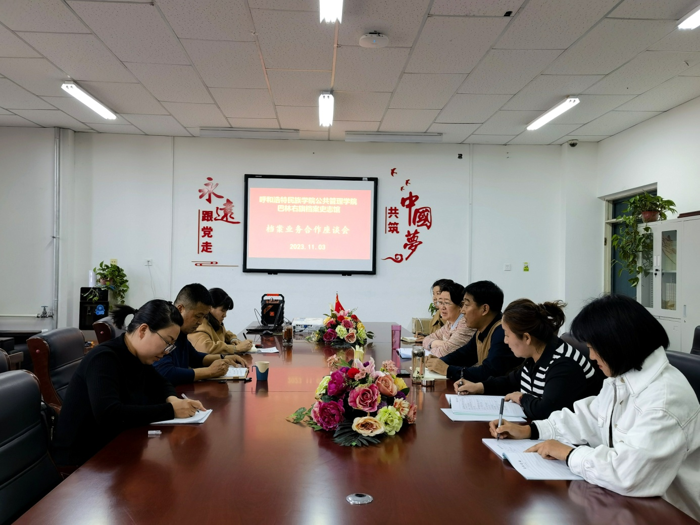 公共管理学院党总支书记格日乐、党总支副书记青格乐图、副院长额尔敦格日乐和档案学教研室老师们参加了此次座谈。
