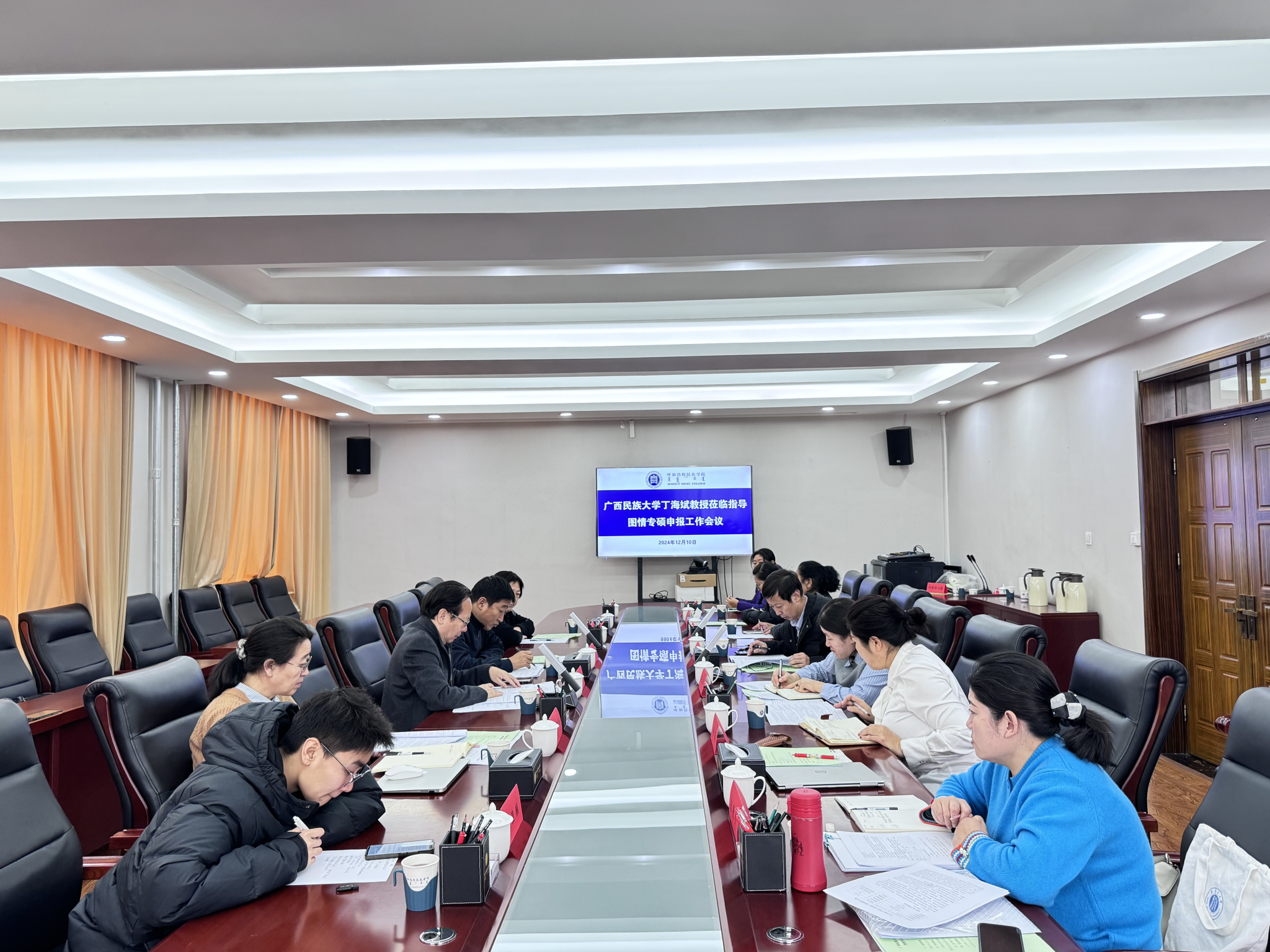 会上,档案学专业负责人青格乐图详细阐述了我院在图书情报领域的教学科研现状及专硕申报的筹备进展。丁海斌教授对图书情报专硕申报的政策要点和关键指标进行了深入解读,他结合多个院校的成功申报案例,从专业定位、师资队伍的构建、课程体系的规划,到实践教学环节的安排等多个维度,进行了全面而细致的分析。丁教授的分享为我院图书情报专硕申报工作指明了清晰的方向,并提供了宝贵的思路。