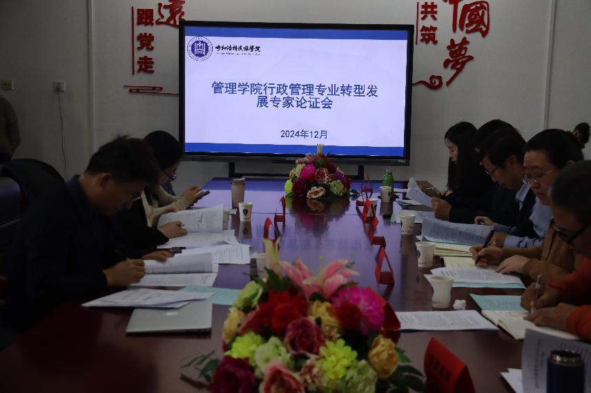 会议由学院副院长额尔敦格日乐副教授主持,院长哈斯同力嘎介绍管理学院办学概况,由教研室主任阿梨玛对行政管理专业转型建设情况进行了详细的汇报。专家组认真听取专业转型建设工作情况汇报,与老师们进行交谈和讨论,认为行政管理专业办学定位明确,培养过程规范。在肯定成绩的同时,围绕转型方向、人才培养、课程设置、实践教学、社会服务等方面问诊把脉,提出结合学校的办学定位,面向基层,通过微专业建设,实践教学全过理、“一人一案”规划等建设性的指导意见。