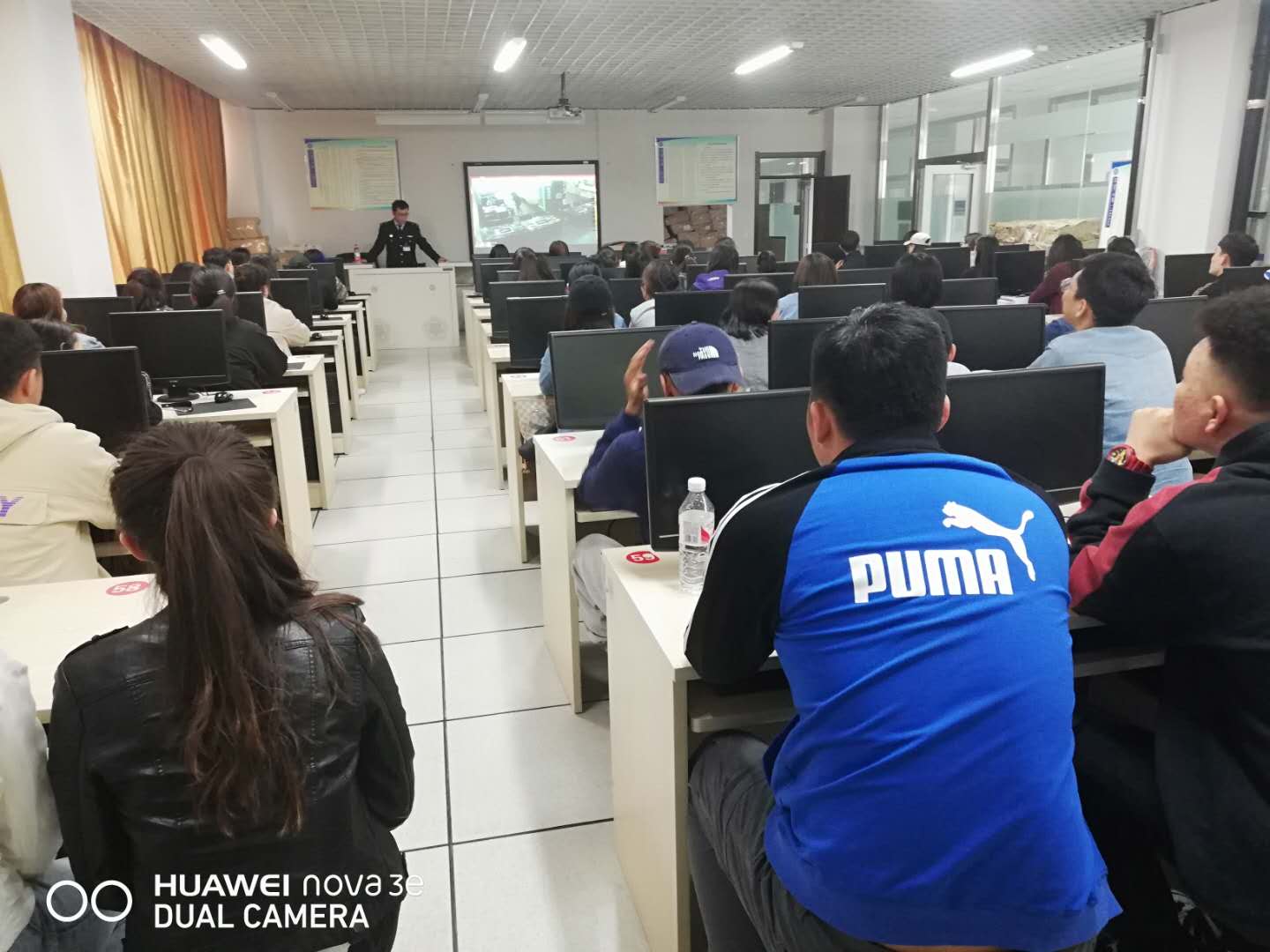 4月15日,管理系通过保卫处邀请内蒙古消防协会张教官在综合楼601教室开展了消防安全讲座。团总支负责人李云老师、辅导员前达蒙老师携2017级学生及各班消防安全联络员聆听讲座。张教员借助PPT课件演示,提问互动等形式,通过触目惊心的图片、视频,一个个真实而又发人深省的案例,就学生公寓如何逃生避险、如何报火警、火灾的预防和应急处理、消防器材的正确使用等方面进行了深入浅出地讲解。
