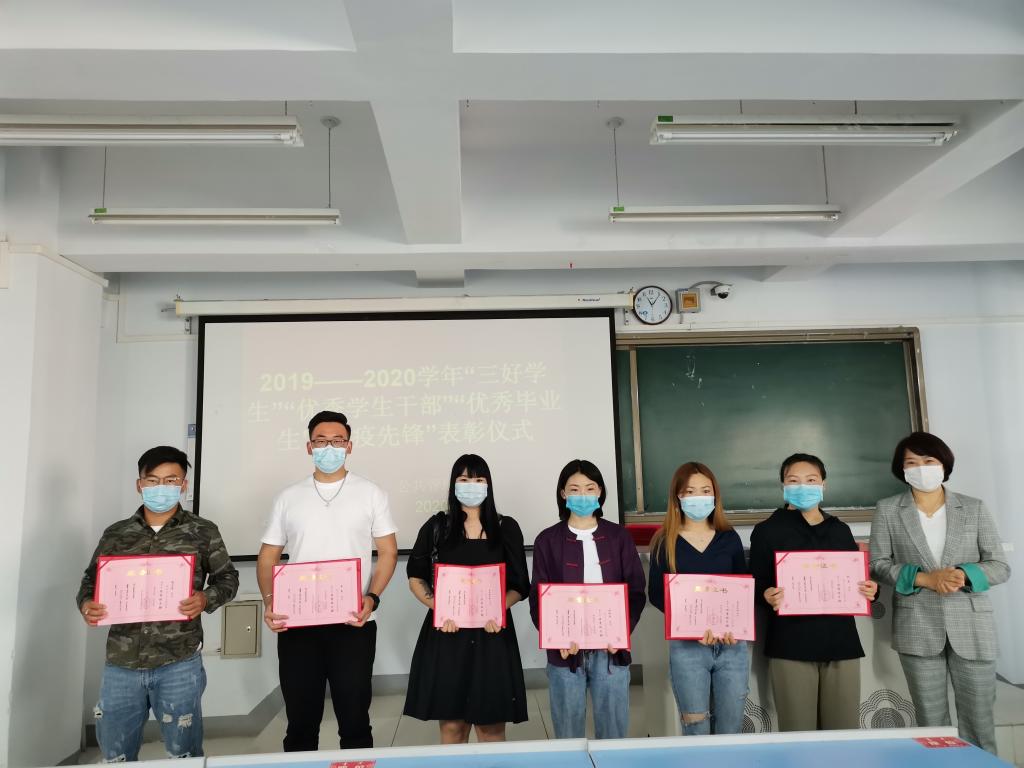 为学习贯彻习近平新时代中国特色社会主义思想和党的十九届四中全会精神,深入贯彻落实全国高校思想政治工作会议精神和全国教育大会精神,树立大学生先进典型,充分发挥榜样示范作用,鼓励广大学生勤奋学习、积极进取、成才报国,经学校研究决定,在2020届毕业生顺利返校之际,于6月2日上午表彰了公共管理学院2019——2020学年“三好学生”“优秀学生干部”“优秀团干部”“优秀毕业生”和积极参加抗疫活动的“抗议先锋”。会议由党总支副书记额尔敦格日勒主持,学院领导和受表彰的毕业生共人参加会议。会上,学工办副主任宝连宣读了各项表彰决定,党总支书记海霞、院长吴宝山为受表彰学生颁发了荣誉证书。最后院长吴宝山讲话,勉励获奖学生希望同学们再接再厉,继续发扬艰苦奋斗的精神,在新环境新岗位上取得更优异的成绩。