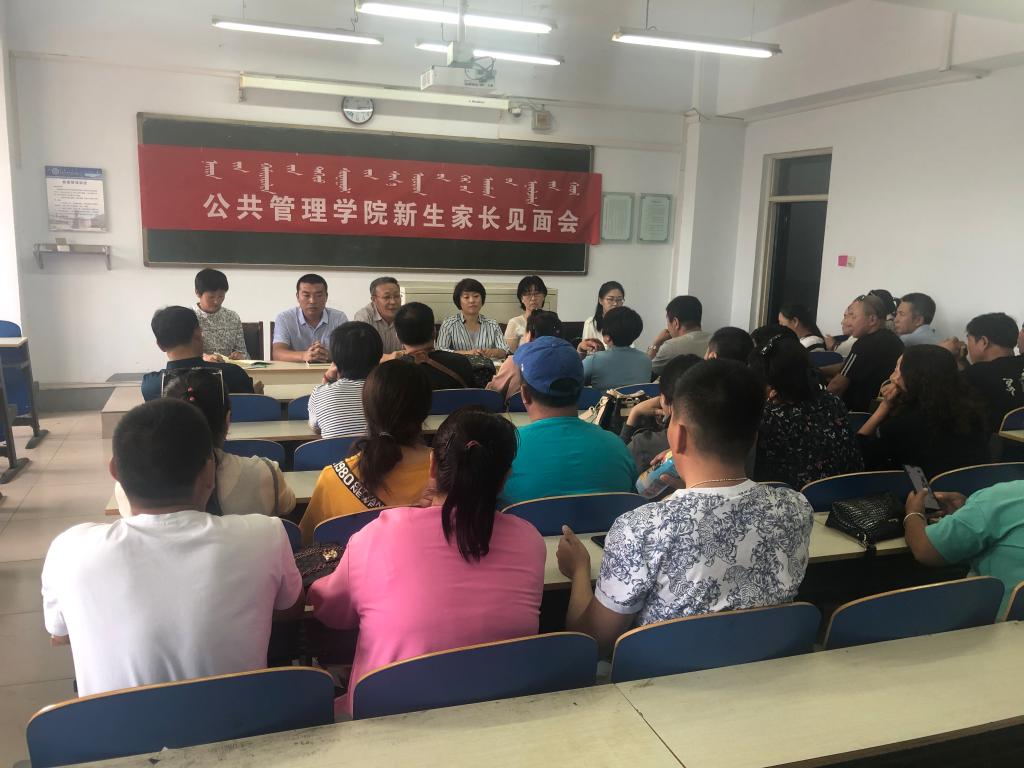 31日下午,在都林楼305教室召开了公共管理学院2019级新生家长见面会。吴宝山院长,额尔敦格日勒副书记,2019级新生班主任陈青春、周乌云、代阳出席会议,50余名新生家长参加,会议由党总支书记海霞主持。首先,由吴宝山院长讲话。他代表学院全体师生对新生家长的到来表示热烈的欢迎,并详细介绍了学院概况、教学环境、师资队伍、专业建设、培养目标、考研就业等方面的情况,使家长对学院教育教学工作有了较为深入的了解。其次,党总支副书记额尔敦格日勒就学校学生管理工作思路及具体内容进行解读,对日常考勤制度、学生违规违纪制度、休退学制度,以及各种学生组织和锻炼平台向家长作了具体介绍。随后,党总支书记海霞对新生家长提出了三点希望:一是家长要多关注和关心学生的学习、生活和思想状况,帮助其尽快适应大学生活环境,尽早规划合理的学习生活目标;二是家长与班主任要加强相互间的沟通交流,为和学院一道将学生培养成优质人才而努力;三是家长和学院、班主任共同做好学生的安全工作,注重安全教育,强化学生自我约束、自我管理、自主学习的能力,防范各类违纪违规事件的发生。最后,家长和与会人员进行互动交流,与会老师从各自分管工作的角度对家长的提问进行了耐心细致的解答。通过此次家长见面会,不仅使新生家长对学院的各项发展、学生的学习生活环境有了更深的了解,对学生管理的要求与规定、发展与培养达成了共识,更为今后学院、班主任和家长之间得交流及人才培养打下了良好的基础。