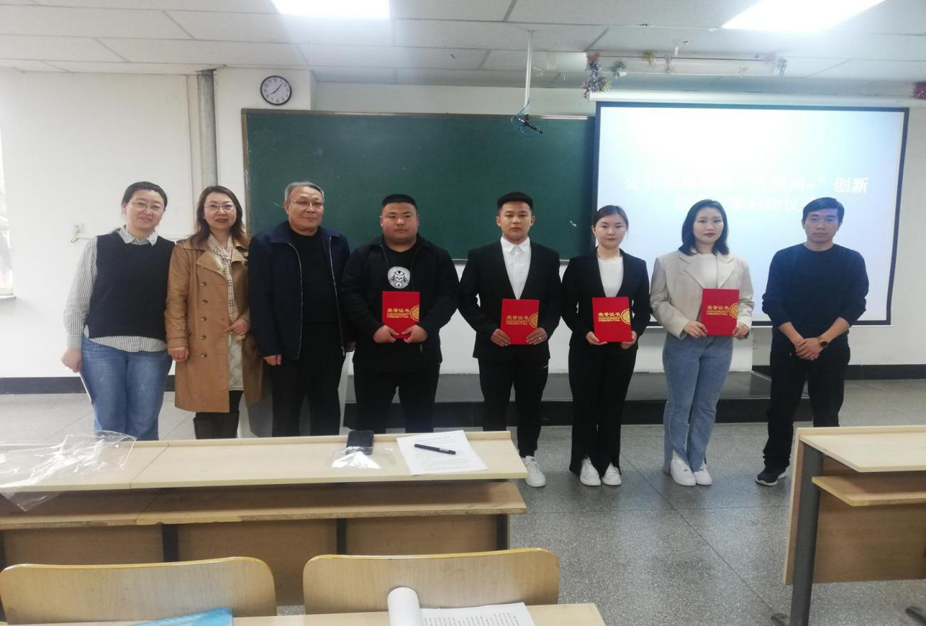 启动仪式第一项,由额尔敦格日乐老师宣布启动仪式开始,公布2020年在我院“互联网+”大学生创新创业大赛中获胜的优胜项目,并给各项目负责人颁发荣誉证书。