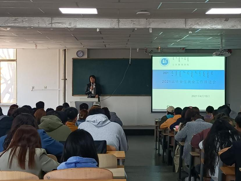 会上,党总支书记海霞传达了学校就业工作会议精神,在分析当前毕业生就业状况基础上对下一阶段工作做了安排部署,指出要高度重视、精心谋划,全员动员、精准发力,多措并举,有效推进,大力推进毕业生更充分更高质量就业。党总支副书记额尔敦格日勒进行了动员讲话,鼓励广大毕业生一要树立正确的就业观和择业观,开阔就业思路,找到未来的发展方向;二要坚定就业信心,在应聘过程中做好充分准备,保持良好就业心态,积极行动,争取更多的就业机会。最后,学院辅导员前达蒙老师围绕就业工作业务办理、就业协议书填写、“北疆就业”平台的毕业生签约和派遣等环节进行了详细讲解。