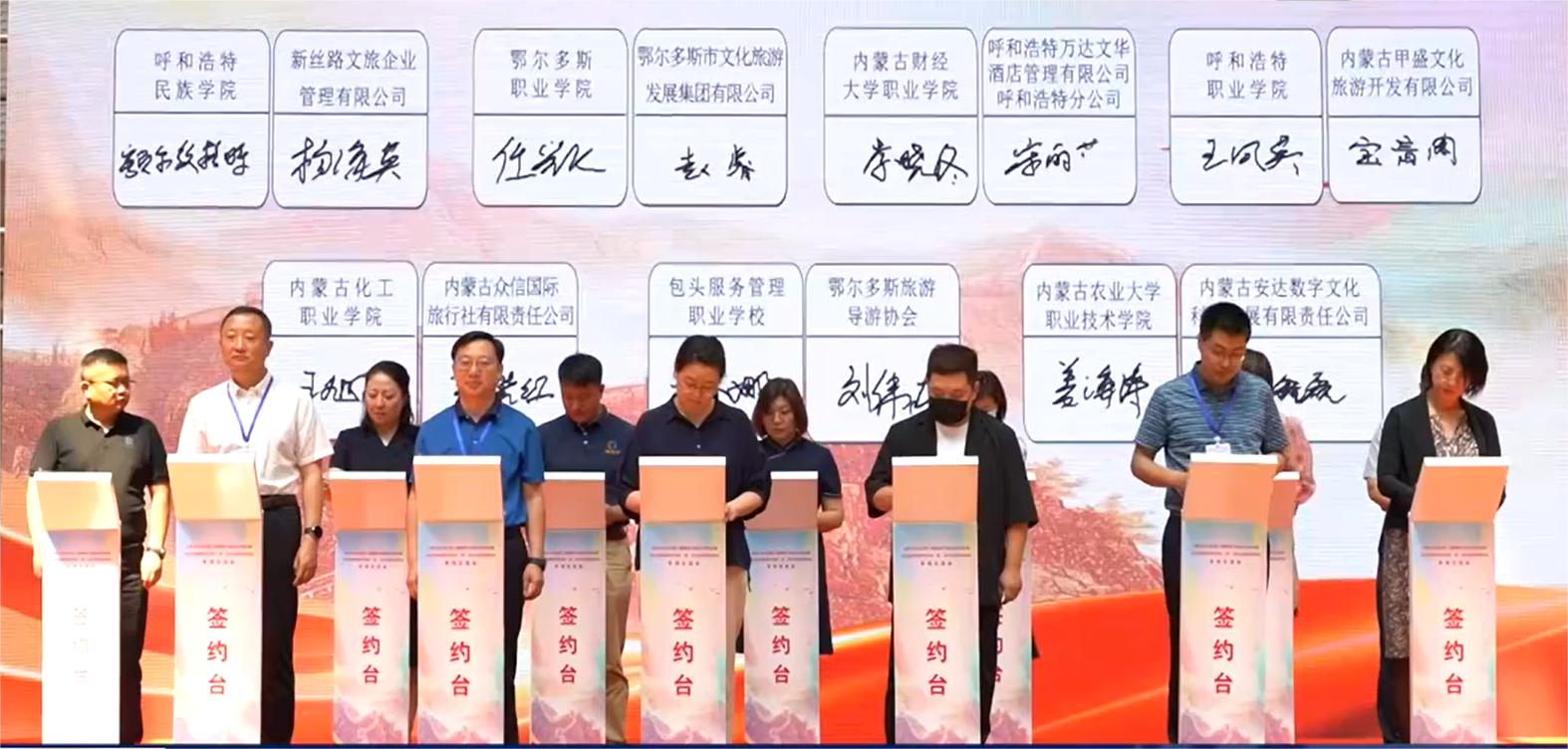 6月30日上午,内蒙古自治区文化和旅游厅、教育厅、人社厅联合举办第二届旅游行业校企对接会暨全区旅游院校书记校(院)长访企拓岗促就业专项交流会。自治区内40所高校的旅游院系负责人和200家企事业单位负责人参加了此次对接会。鸭脖派公共管理学院党总支副书记额尔敦格日乐和辅导员前达蒙老师参会。会上,学院与新丝路文旅企业管理有限公司签订了实习就业意向协议,公司与学校将在顶岗实习、技能培训等方面开展协作,深化校企融合,实现企业和学校的共同发展。