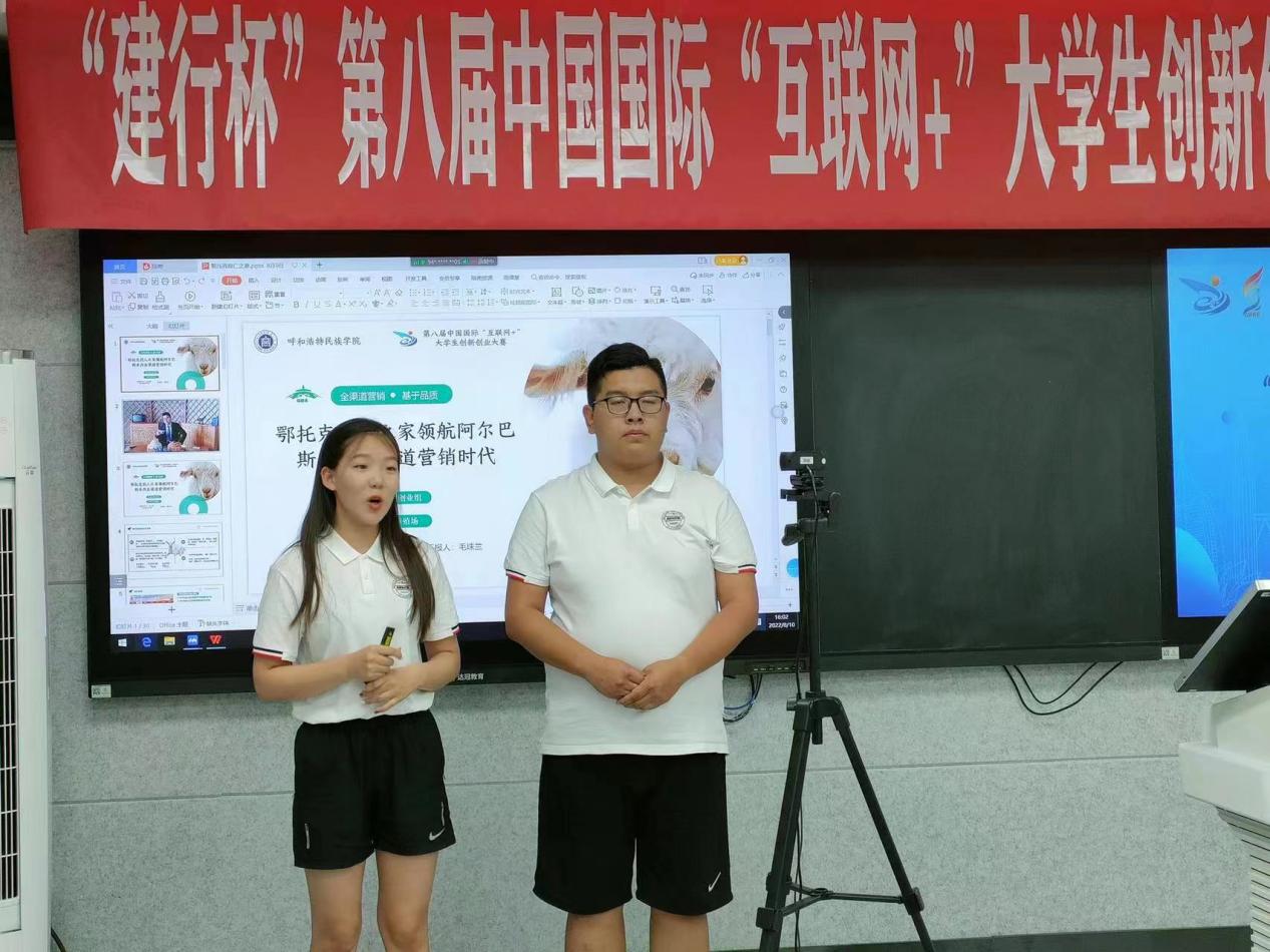 经过层层选拔,公共管理学院2020级文秘班哈日贵同学负责的《鄂托克牧人之家领航阿尔巴斯羊肉全渠道营销时代》项目选入第八届内蒙古自治区“互联网+”大学生创新创业大赛暨第八届中国国际“互联网+”大学生创新创业大赛内蒙古赛区选拔赛总决赛职教赛道现场比赛项目。在白根小为首的指导教师悉心带领下项目团队成员积极努力备赛,经过激烈角逐,该项目获得本次大赛银奖。在现场比赛中,项目组成员充分展现了我院学子“我敢闯,我会创”的创新拼搏精神,彰显了创新创业教育改革成果和产学研成果转化的实质成效。