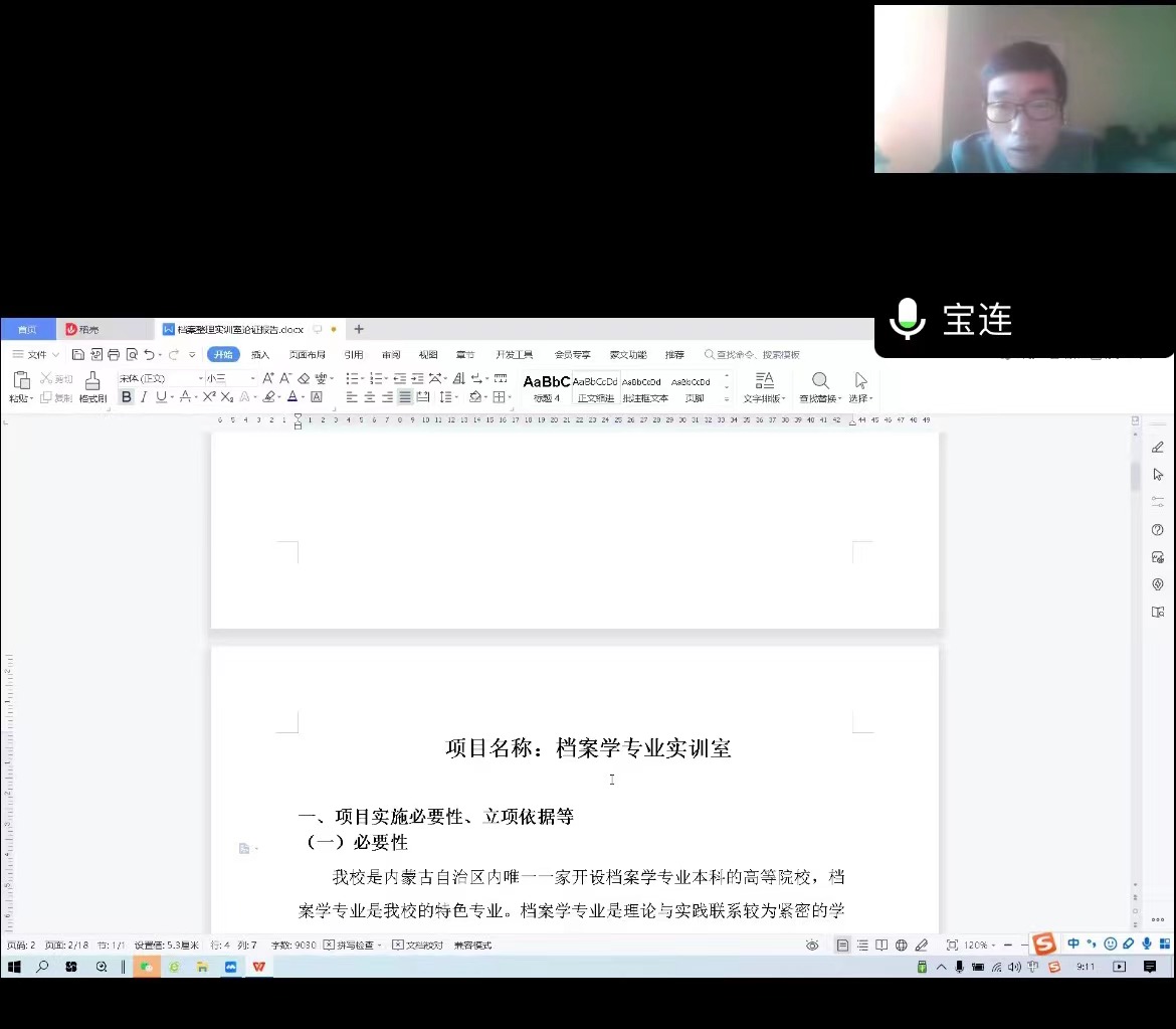 首先,档案教研室宝连老师对实训室建设方案在专业设置和实训室建设的总体情况和承担的功能任务作了说明。并对该实训室建设的必要性、可行性、设备需求情况等内容作了详细汇报。经过线上的提问和交流,参会处室负责人一致认为我院实训室的建设项目紧扣专业建设特点和需求,项目可行实用。此次论证会的顺利召开,为顺利实施我院档案整理与修复实训室建设项目提供了保障。