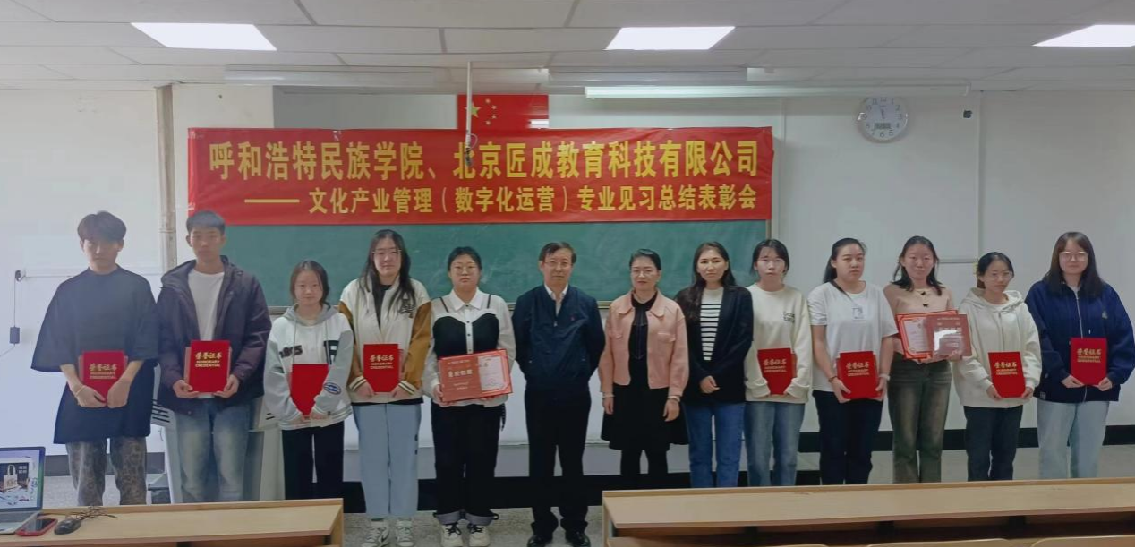 在表彰会上,北京匠成教研部的雷芳老师和企业班主任亢迪老师以及公共管理学院的莫乐孟博士受邀担任评委。他们以严谨的态度和高要求的标准,经过细致的评选,最终选定了10名在见习期间表现出色的学生。公共管理学院院长哈斯同力嘎亲临颁奖现场,为优秀学生颁发了荣誉证书和奖品,对他们取得的优异成绩表示热烈的祝贺。