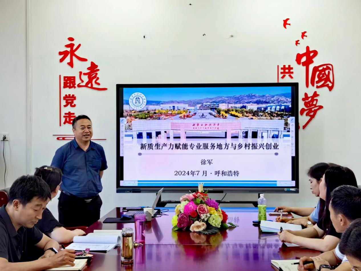 为贯彻落实自治区人力资源和社会保障厅《内蒙古自治区专业技术人员继续教育实施办法》和《自治区人社厅关于做好2024年全区专业技术人员继续教育工作通知》(内人社办发〔2023〕204号)和《自治区人事考试院关于2024年内蒙古自治区专业技术人员继续教育公需科目网络学习的通知》要求,7月5日,管理学院特别邀请内蒙古财经大学创业学院院长、硕士生导师、全国财经院校创新创业联盟副秘书长徐军教授来我院为全体教师开展了主题为《新质生产力赋能专业服务地方与乡村振兴创业》的继续教育讲座。