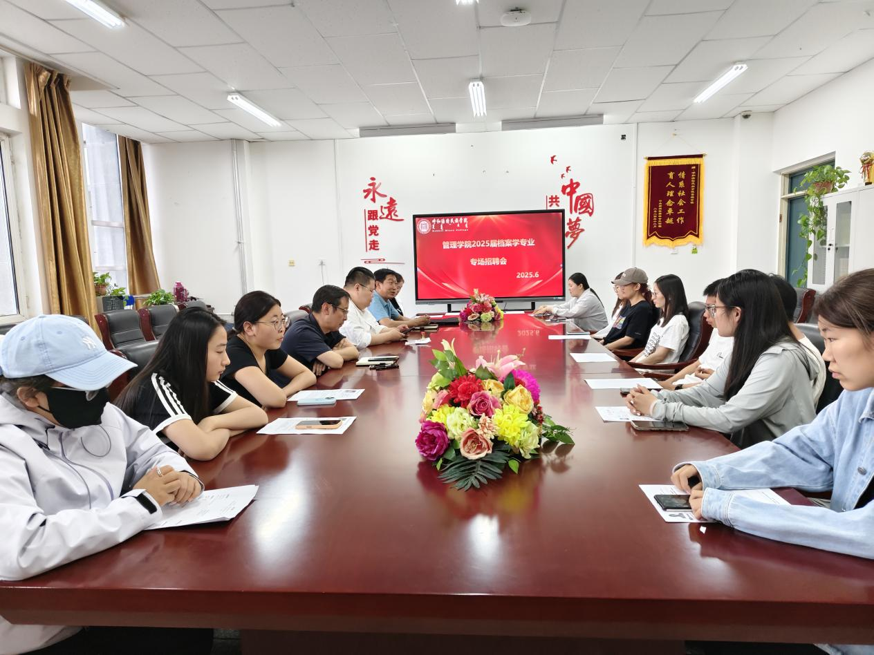 2025年5月29日,鸭脖档案学教研室在管理学院举办专场招聘会,邀请鄂尔多斯市睿元文化发展有限责任公司总经理宝上越先生来校宣讲,为2025届档案学专业毕业生提供优质就业机会。学院院长哈斯同力嘎、党总支副书记青格乐图参加了活动,档案学专业12名应届毕业生参加招聘会。