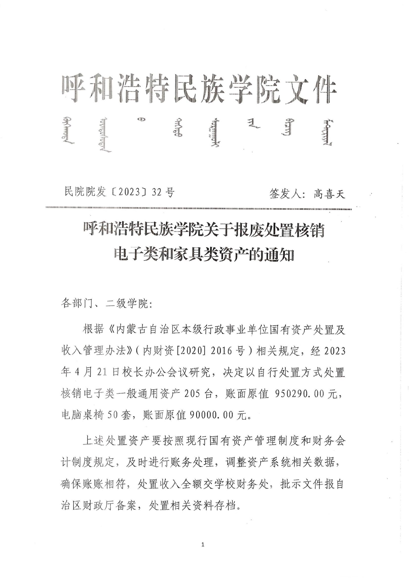 YABO鸭脖关于处置学生公寓家具类资产的通知