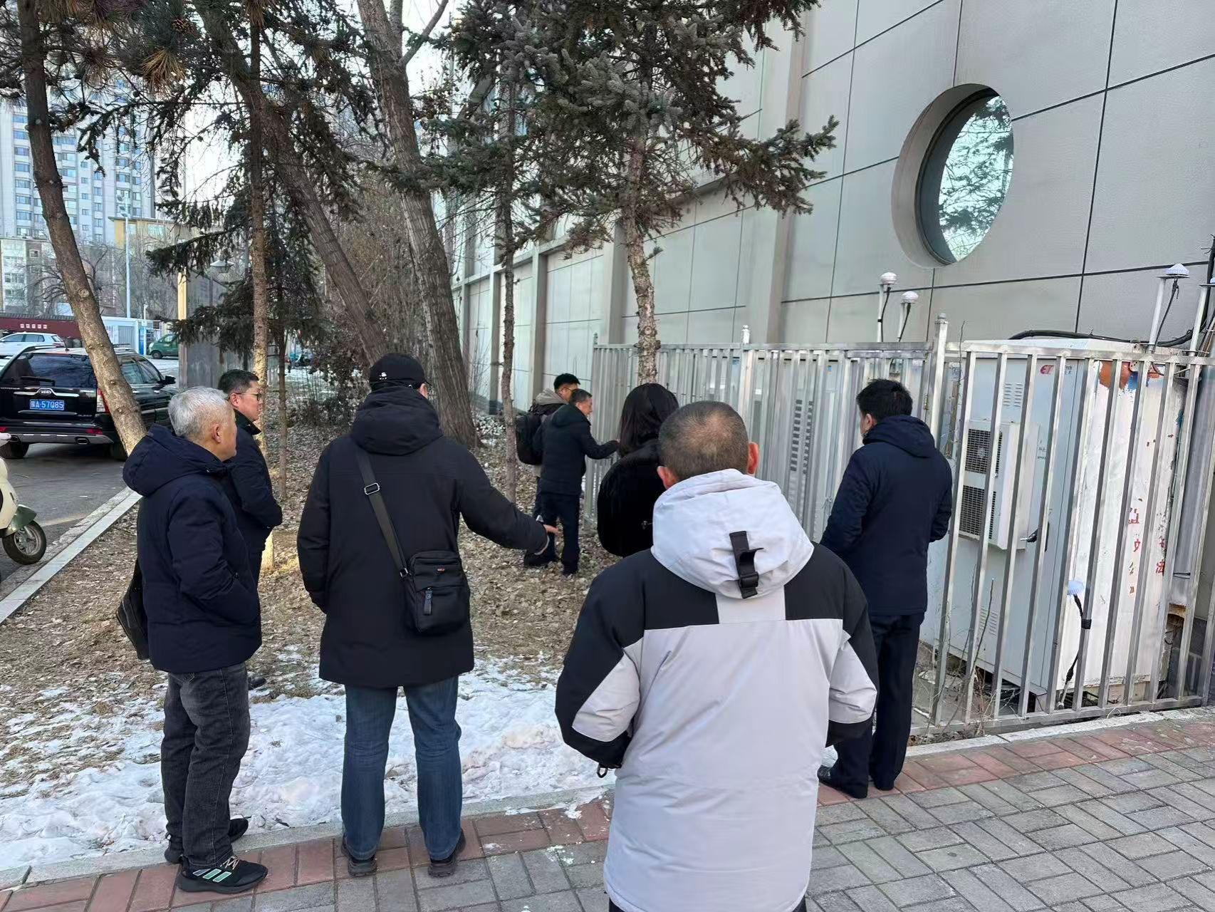 检查组对南体育馆东侧的基站进行检查