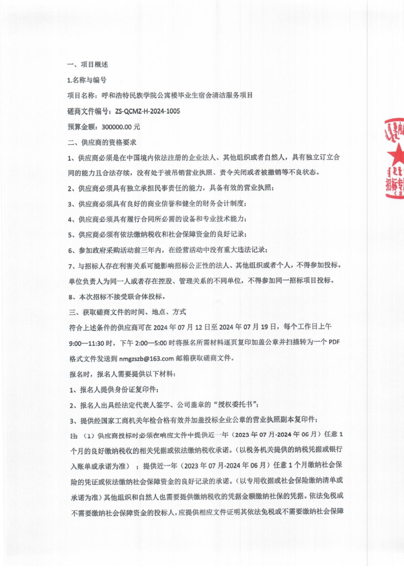 YABO鸭脖公寓楼毕业生宿舍清洁服务项目竞争性磋商采购公告
