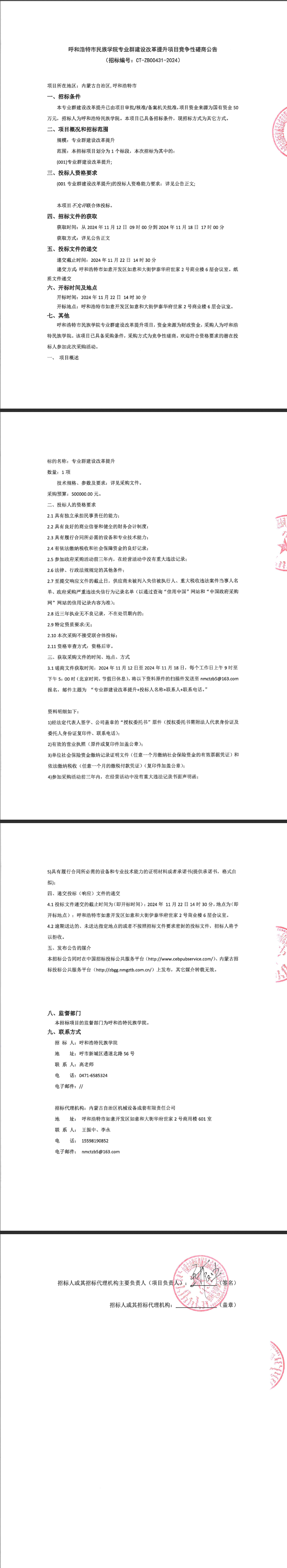 呼和浩特市民族学院专业群建设改革提升项目竞争性磋商公告